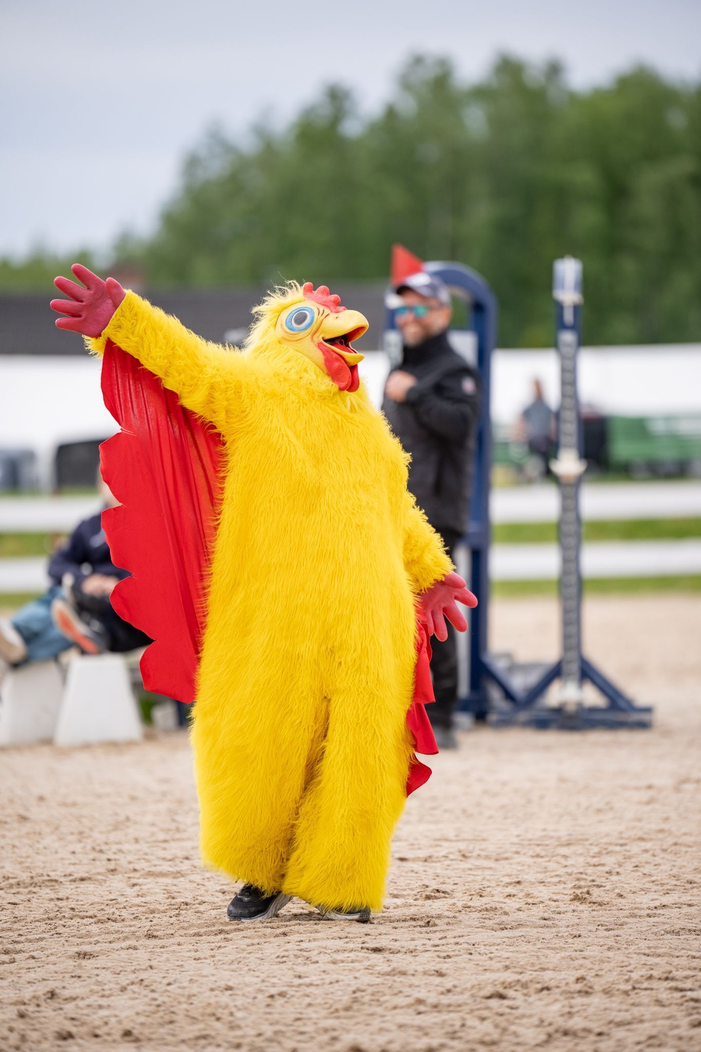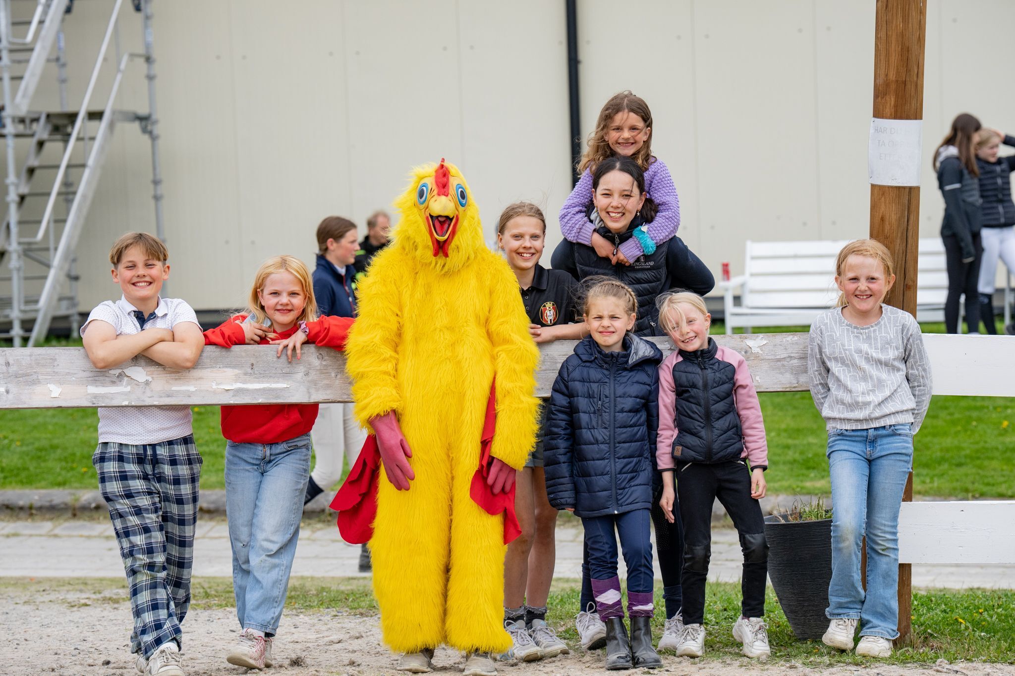 - På mandag - som jo var siste dag i pinsen - var det finaledag med mange spente ryttere. Vår maskot Hønemor har som alltid vært på plass gjennom hele helgen, og mange synes tydeligvis at dette har vært morsomt. Vi har hatt full trøkk her på stevneplassen med massevis av campingvogner, telt og flere hestebutikker, og det har rett og slett vært yrende liv fra morgen til kveld, tre hele dager til ende, smiler hun bredt og legger til at ildsjelene i Hønefoss og Ringerike Rideklubb, både håper og tror at mange har storkost seg på stevnet i pinsen.