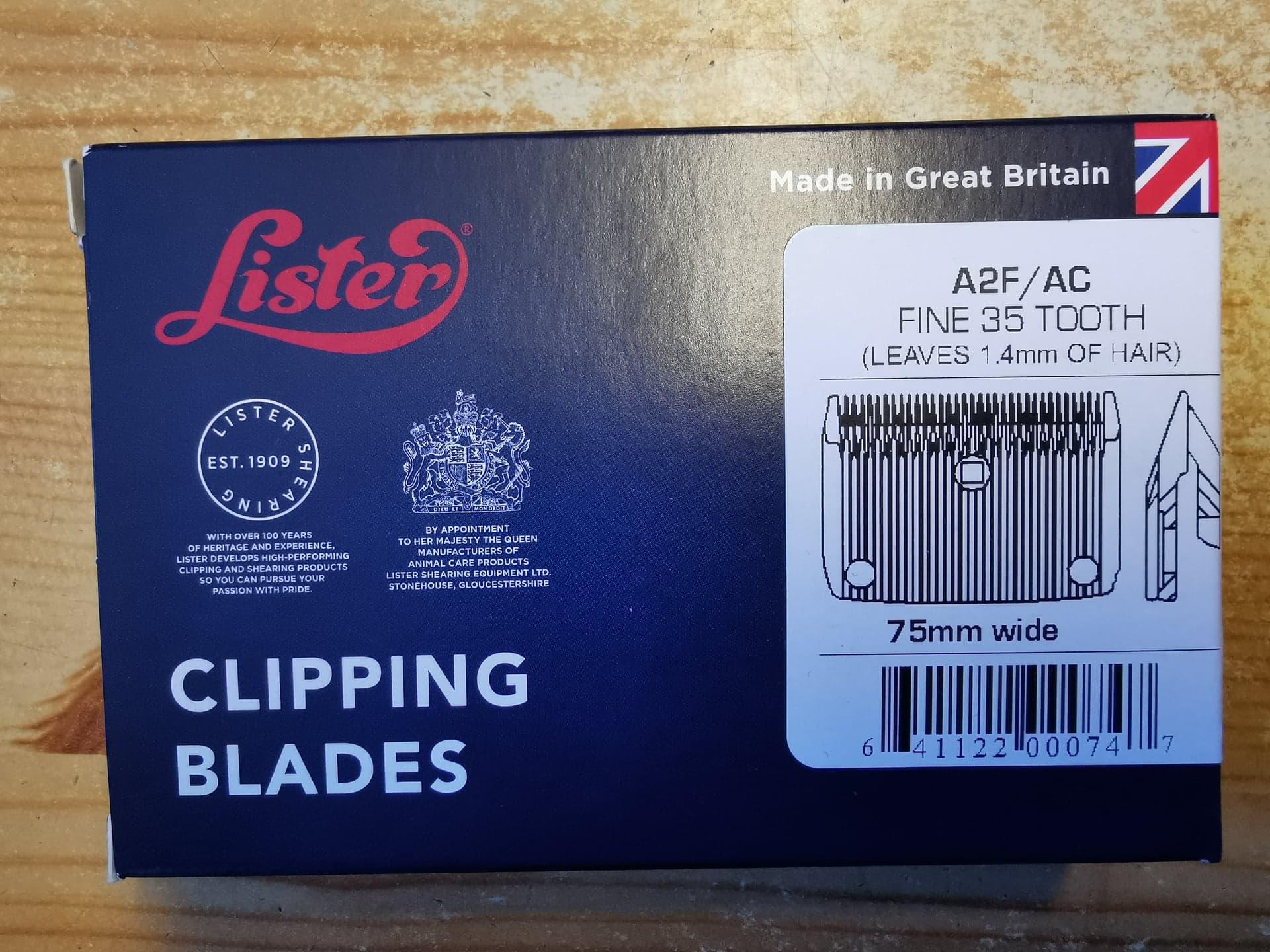 Betegnelsene på skjærene kan imidlertid variere, noen skjær er merket med en bokstav og et tall. Om skjær merket A2/AC (Medium blade) etterlater det en pelslengde på 2,5 mm ifølge hjemmesiden til fabrikanten Lister, som bruker denne betegnelsen. Er skjæret merket A2F/AC (Fine blade) vil det etterlate en pels med lengde 1,4 mm hår. Er skjæret merket A2C/AC (Close blade) vil pelsen bli 1,2 mm. Skjær merket A2H/AC (Lifter blade) etterlater seg en pels enten på 13 mm eller 19 mm. A2S/AC (Surgical blad) gir en pelslengde på 1 mm.