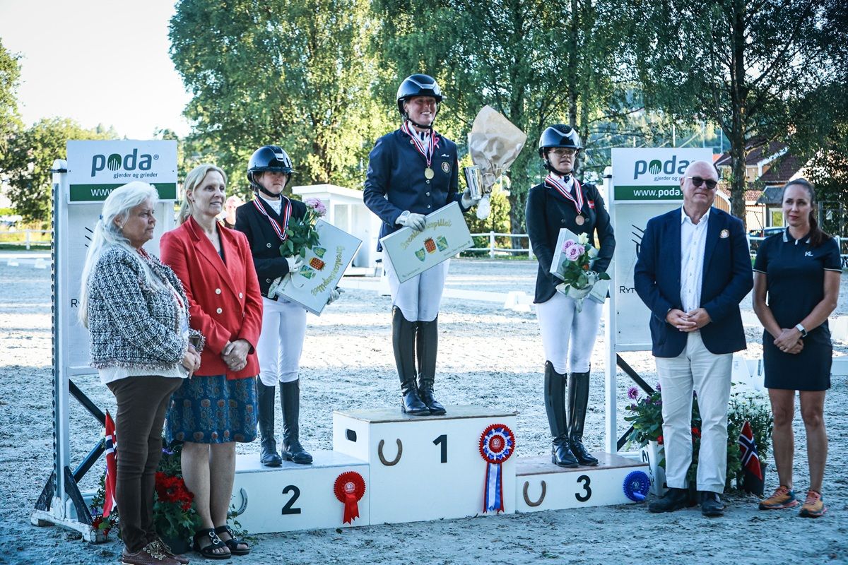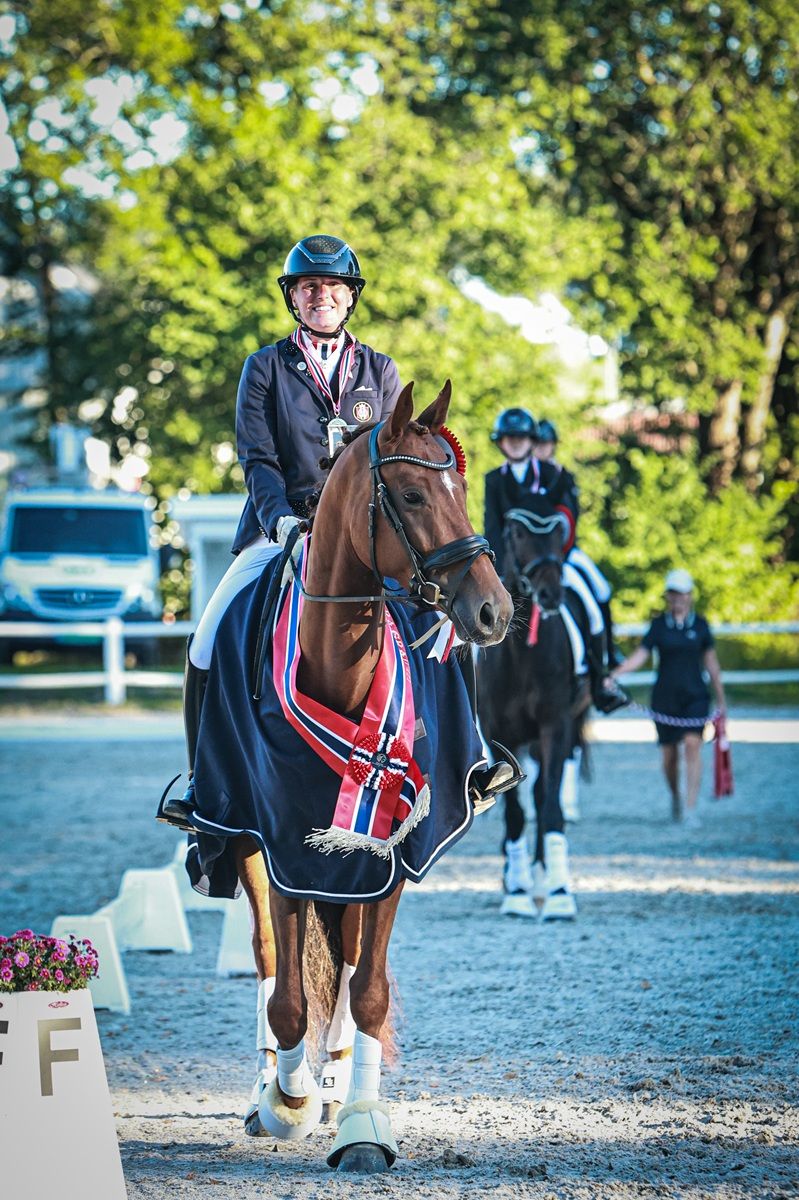 Det var tre startende i klassen – og det ble tre verdige medaljevinnere. Malin Brauti med NWB-vallaken Dille Ojoj (Deemster/Lanciano, oppdretter Carolin Dille) fra Jarlsberg og Melsom Rideklubb har hatt et riktig godt år, og viste stabile program der ekvipasjen hevet seg fra dag til dag.