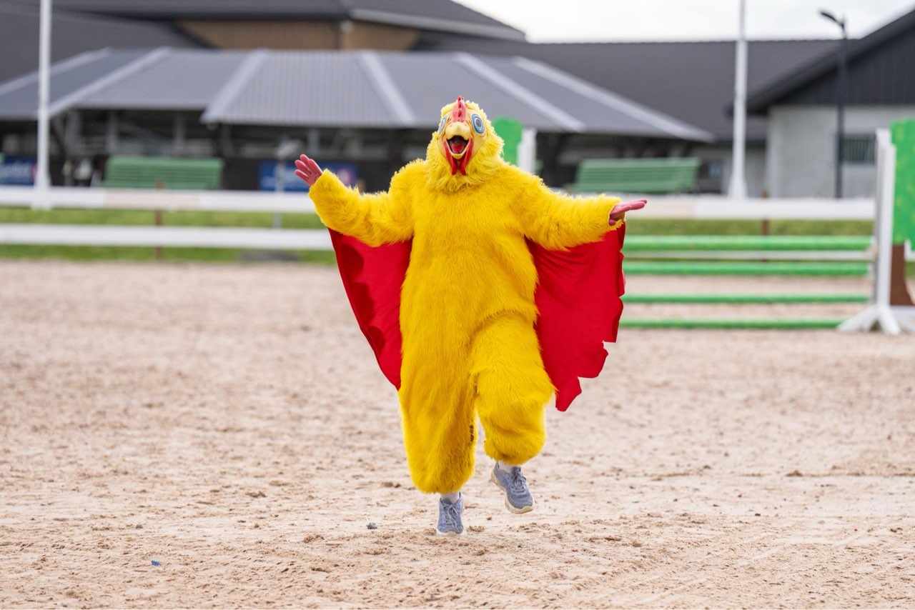 - Vi har hatt flere ryttere fra rideskolen på leide hester til start begge helger, bekrefter hun. – Og det er både rørende og gøy å høre disse si at «Får jeg lov til å være høne neste gang?» eller med stjerner i øynene fortelle hvor stort det er å delta på et stevne som vårt på en internasjonal bane, smiler hun.