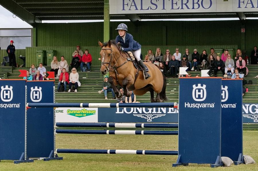 Ni unghester taklet Fredrik Malms finalebane feilfritt, og gikk videre til omhopping mot klokken. Fem av disse gikk igjen feilfritt, og raskest av dem alle var Quick Pleasure van de Nachtegaele e. Epleaser van ‘t Heike med velkjente Jens Fredricson i salen.