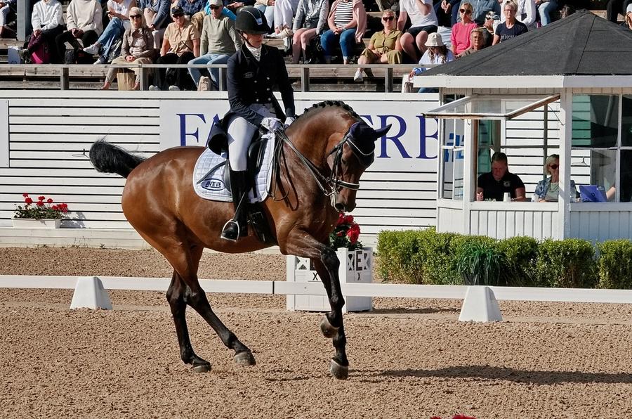 Trude Hestengen er en av de mest trofaste deltakerne ved Falsterbo Horse Show, og er ofte å finne på startlistene. Denne gangen rir hun både unghest og deltar ved CDI3*-delen stevnet. Lørdag ettermiddag red hun VM-hesten sin, den kun ni år gamle Furstenball-sønnen Christianslund Furstino, til 70.445 prosentpoeng i Grand Prix kür.