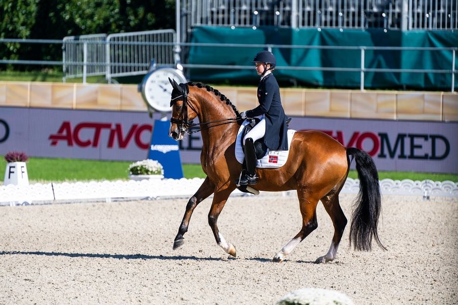 -Vi startet programmet på 45 % omtrent, da er det vanskelig å komme opp igjen, og det skal noe til at dommerne da raskt gir så høye karakterer. Han fortsatte å være spent, han var ikke så god i kontakten, han mistet ryggen – holdtene våre trakk ned, og spenninger i skritt også, reflekterer rytteren strengt mot seg selv.