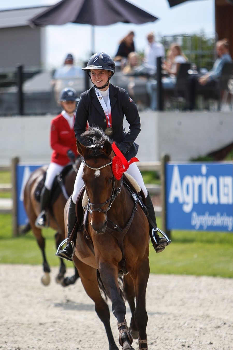 Sølvvinneren smiler: - Og så var det mange som var der, venner og kjente – og rideskolebarna der hjemme som fulgte det via streamingen og heiet på meg. Og så hørte jeg jo på pappa som sto der på sidelinjen og hoppet og spratt!