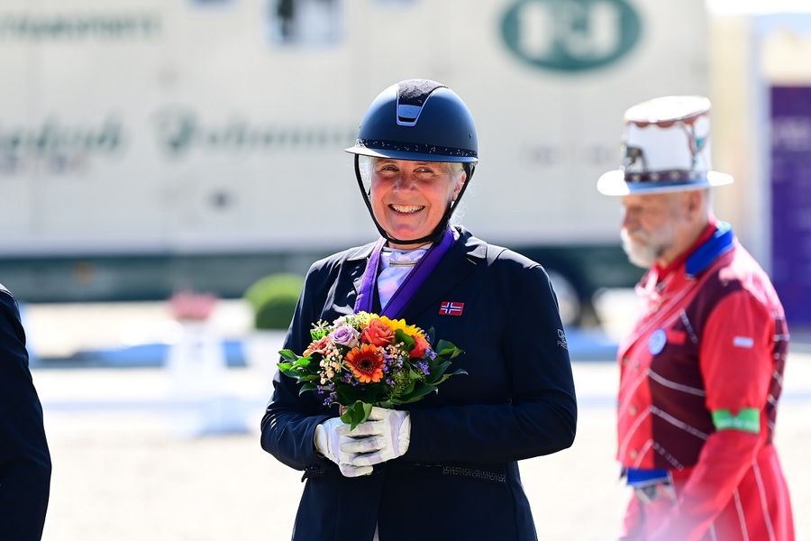 Ann Cathrin er strålende glad for enda en medalje, selv om hun ikke var så fornøyd med egen innsats i dag. – Ja, det var deilig å ta en medalje til, selv om jeg ikke var så flink i dag. Men hesten gikk godt, og når det hele holder til bronse, så må man da være glad!