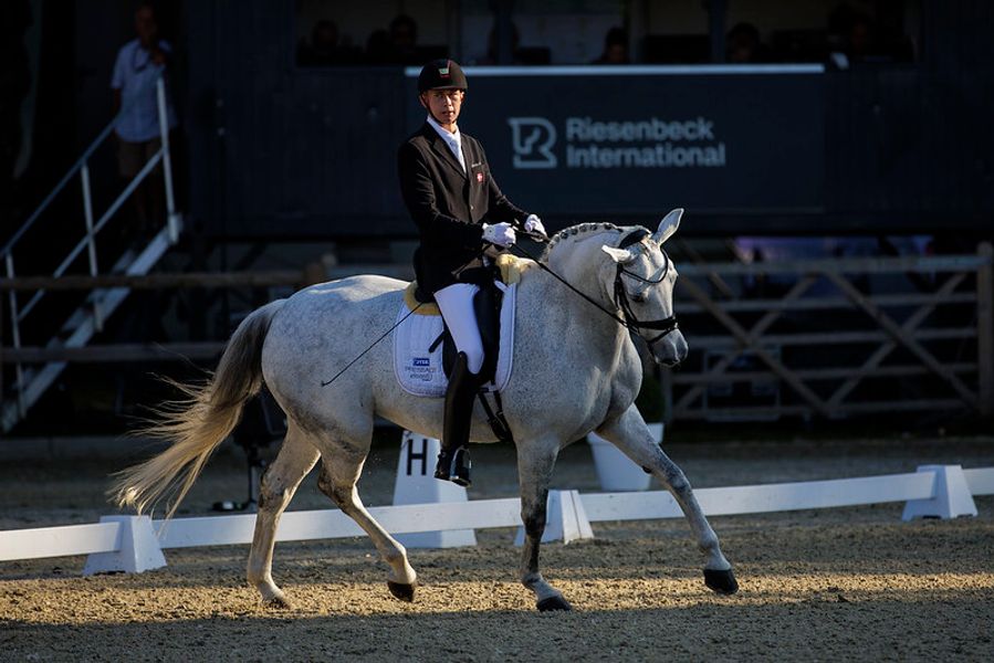 Ann Cathrin Lübbe/La Costa Majlund (Sir Lancelot/Sir Oldenburg, oppdretter Stutteri Majlund) var første ekvipasje inn på banen da startsignalet gikk for para grad II-rytterne i Riesenbeck i dag. La Costa Majlund er en elegant, svært velgående vallak og ekvipasjen gikk sikkert og presist til sin musikk fra «Pirates of the Caribbean». Innimellom var La Costa ikke helt stødig i kontakten, men øvelsene ble utført avspent og fint. Dommerne belønnet freestylen med 74,540 %.
