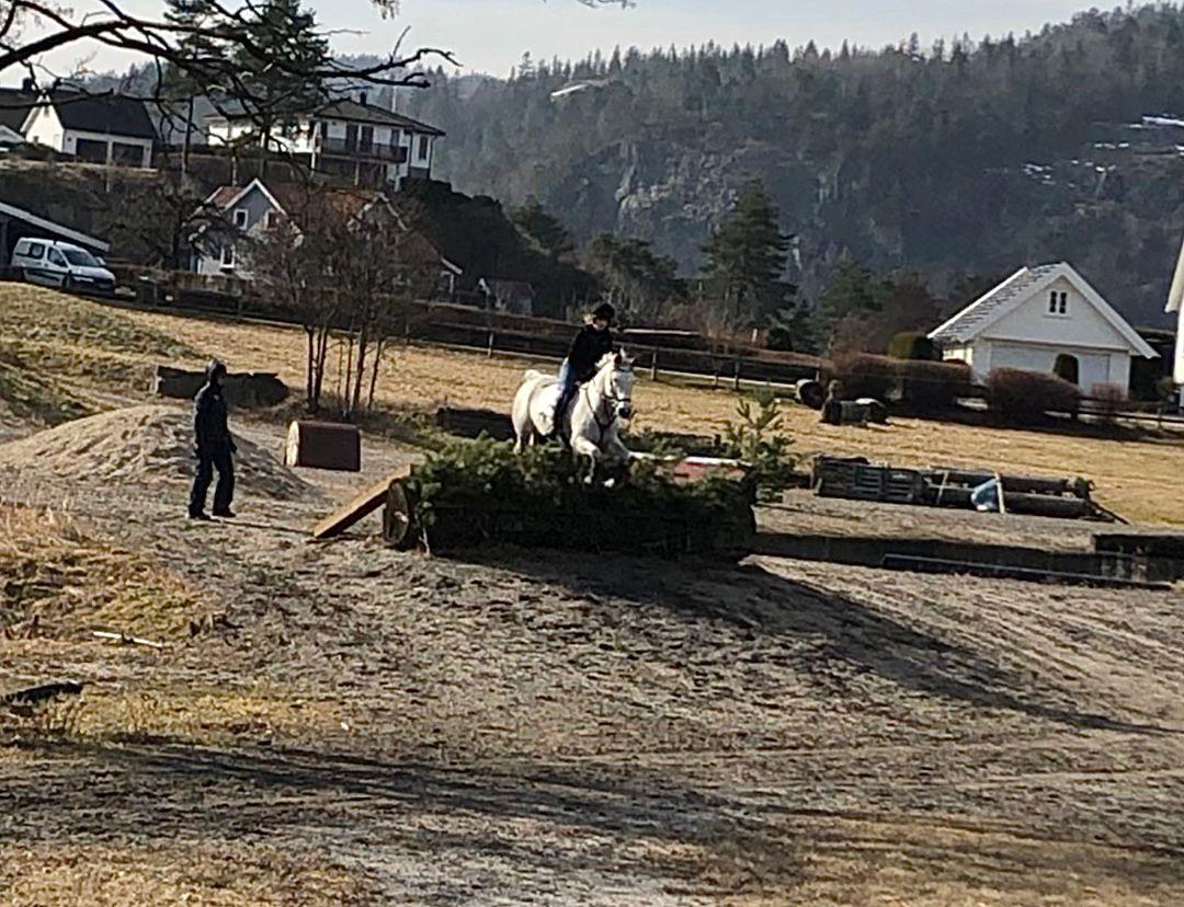 Den muligheten grep Ismina raskt etter at de flyttet til sørlandet på selveste nyttårsaften. – Jeg har vært på 3 terrengtreninger nå, og Misty elsker det, hun bare kaster seg ut i det, stråler den unge rytteren.