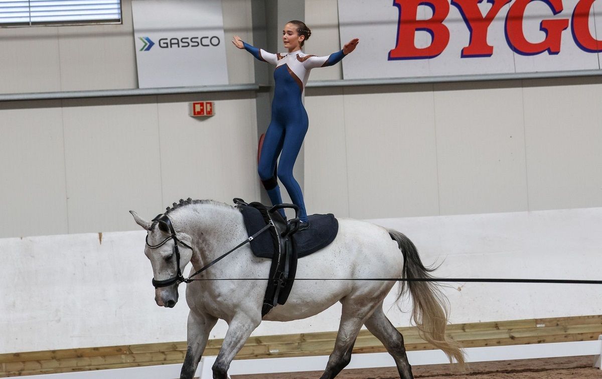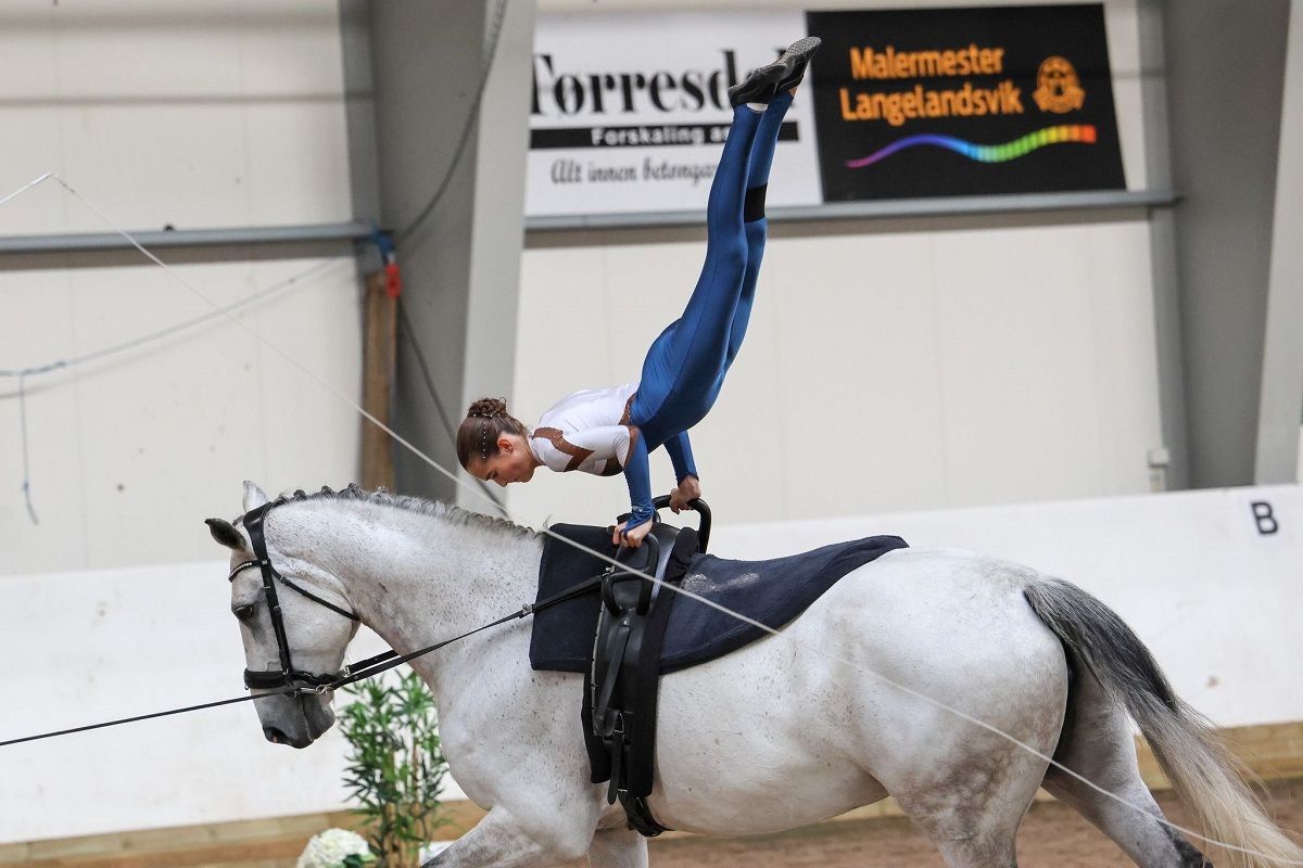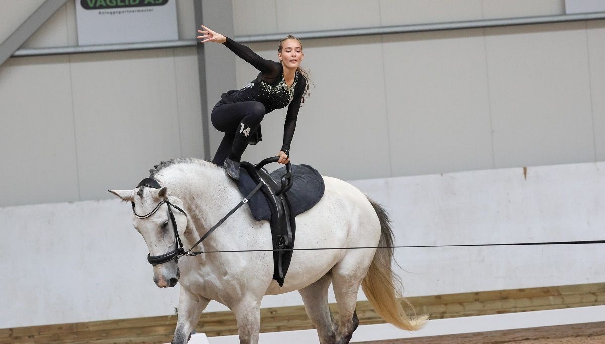 Mathilde har vokst opp med hest og har sans for mange grener, men det er voltige det går mest i. – Jeg vet ikke helt hvorfor det er så gøy, det er bare noe med det! Man rir jo ikke, og det er veldig annerledes enn de andre grenene. Man bruker ikke hjelm, og man må være veldig trent, man må være sterk og myk samtidig, sier den nybakte mesteren som ellers har startet både sprang, dressur og feltritt.