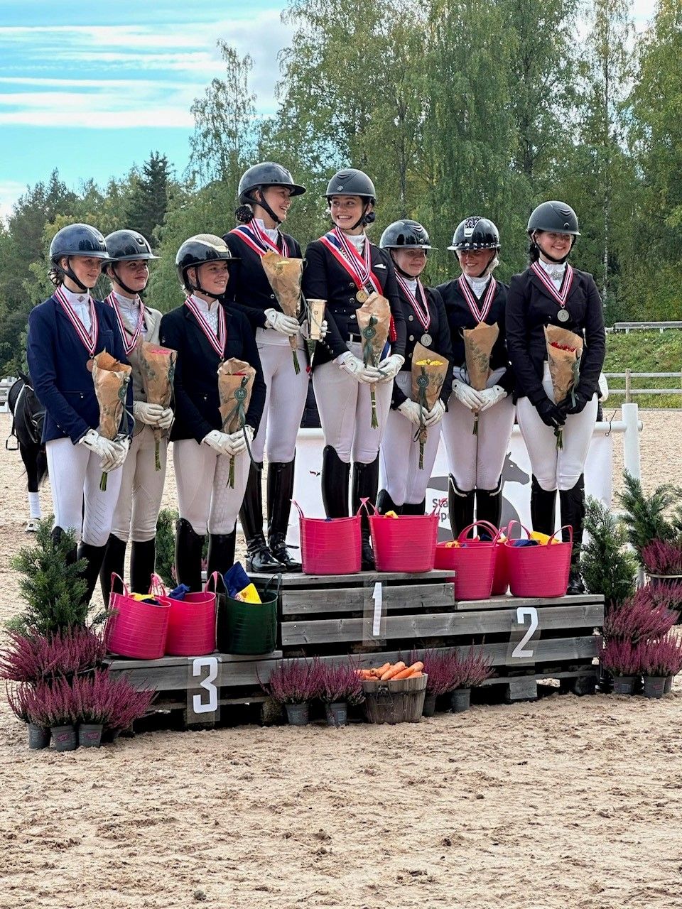 Hønefoss og Ringerike Rideklubb fulgte på bronseplass med 245,062 poeng, det sørget Mathea Berg Sandnes/Adamsens Megano, Amalie Sundberg Risberg/Luke Clover og Emily Alexandra Bech/Hesselbjergs Alpe Rose for. Rett bak dette laget kom da Jæren Hestesportsklubb med 243,190 poeng. Dette laget besto av Ellinor Thomassen/Sabine og Martine Haugsdal/Kjeldalsgaards Bea.
