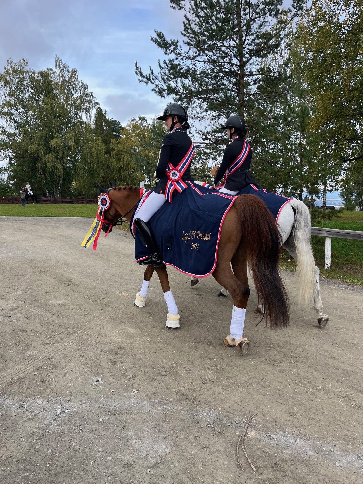 Som om det ikke var nok at Louise har en trenerhånd over hele gullaget i lag-NM, så har hun også fingrene med i spillet når det gjaldt ponni-gullet. Det ble ridd inn av Sofia Cabal Berglund/Leah’s Girl og Eira Vasdal Gundersen/Herikos Bredager for Grenland Ryttersportsklubb. – Eira og Herikos underviser jeg på helgetreninger i Sandefjord, og så rir de fast på time hver uke online, forteller Louise. -Herikos er en rutinert herremann, og Eira har lært masse av å ri ham. Han gjør ikke noe gratis, så det har også blitt noen nedturer i år, men vi har jobbet målrettet, og han går mye på tur for å holde kondisjon og humør oppe. Denne helgen fikk de to fine runder, og det var så gøy å avslutte sesongen med et slikt resultat!