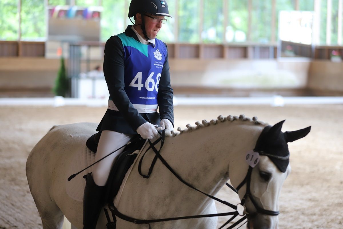 Kristoffer Hadland Paulsen fikk kjenne på hestens fluktinstinkt, men holdt seg i salen og red seg mesterlig opp. Det ga en sjetteplass i dagens dressurfinale Level B (I) under Special Olympics World Games Berlin.