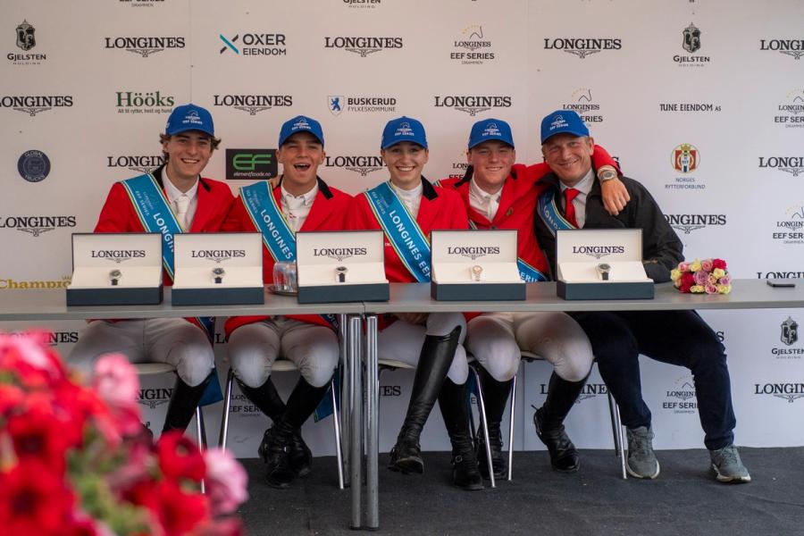 På plass for å forsvare de norske fargene i årets andre kvalifisering i region Nord av Longines EEF Nations Cup var denne gangen Johan-Sebastian Gulliksen med Harwich VDL (Arezzo VDL/Darco, eier Stall Gullik), Marit Haarr Skollerud Cox med Nelson Van’T Roosakker (Zandor/Kashmir van Schuttershof, eier Karel Cox Horses, Tore Skollerud), Therese Søhol Henriksen med Santos Z (Spartacus/San Patrignano, eier Kingsrød Trading AS) og Oda Charlotte Lyngvær med Carabella VD Neyen Z (Carrera VDL/Lux Z, eier Stal Hendrix). Chef d’Equipe var som vanlig Mikael Kolind.