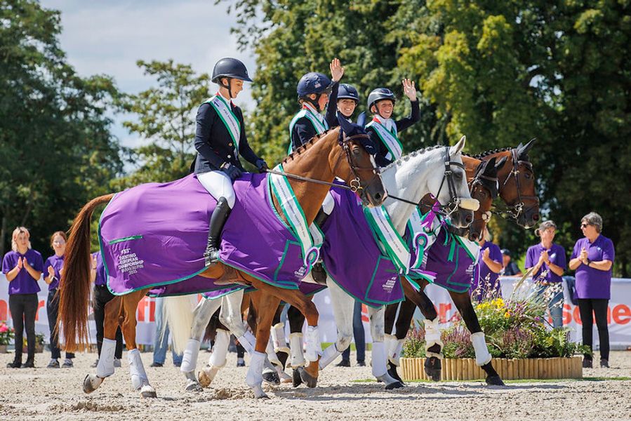 Det var ingen norske deltagere med ved forrige helgs EM i feltritt i franske Haras du Pin, der det britiske laget – bestående kun av kvinner (Kitty King, Yasmin Ingham, Laura Collett og Rosalind Canter)– tok gullet foran Tyskland og Frankrike. Det var en sterk kvinnedominans i toppen ved dette mesterskapet – individuelt var det kun kvinner på ballen, med individuelt gull og sølv til Storbritannia ved Rosalind Canter /Lordships Graffalo (Birhof’s Grafenstolz/Rock King, SHBGB, oppdretter Lordships Stud, Writtle College) og Kitty King/Vendredi Biats (Winningmood/Camelia de Ruelles, SF, oppdretter Philippe Brivois) – og ja, Kitty er datter av legendariske Mary King. Bronsen gikk til tyske Sandra Auffarth/Viamant du Matz (Diamant de Semilly/Voltigeur Le Malin, oppdretter M. Roger Sevette, Fegreac).