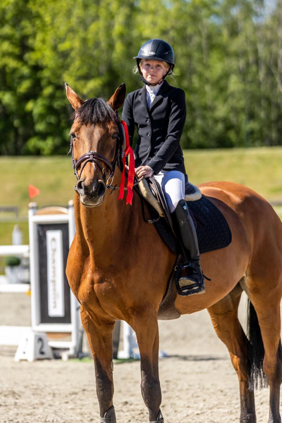 -Hun kommer aldri til å få tilbake Quinine, ler hun. – Planen min er å fortsatt ri 1.10 m, men etter hvert kan vi kanskje også prøve oss i 1.20 m, hvis det fortsetter å gå like bra. I mellomtiden gleder jeg meg til å trene og bli bedre kjent med Quinine på sprangbanen, for selv om jeg nå har hoppet litt med henne, så har hun jo alltid vært mammas hest, smiler tolvåringen.