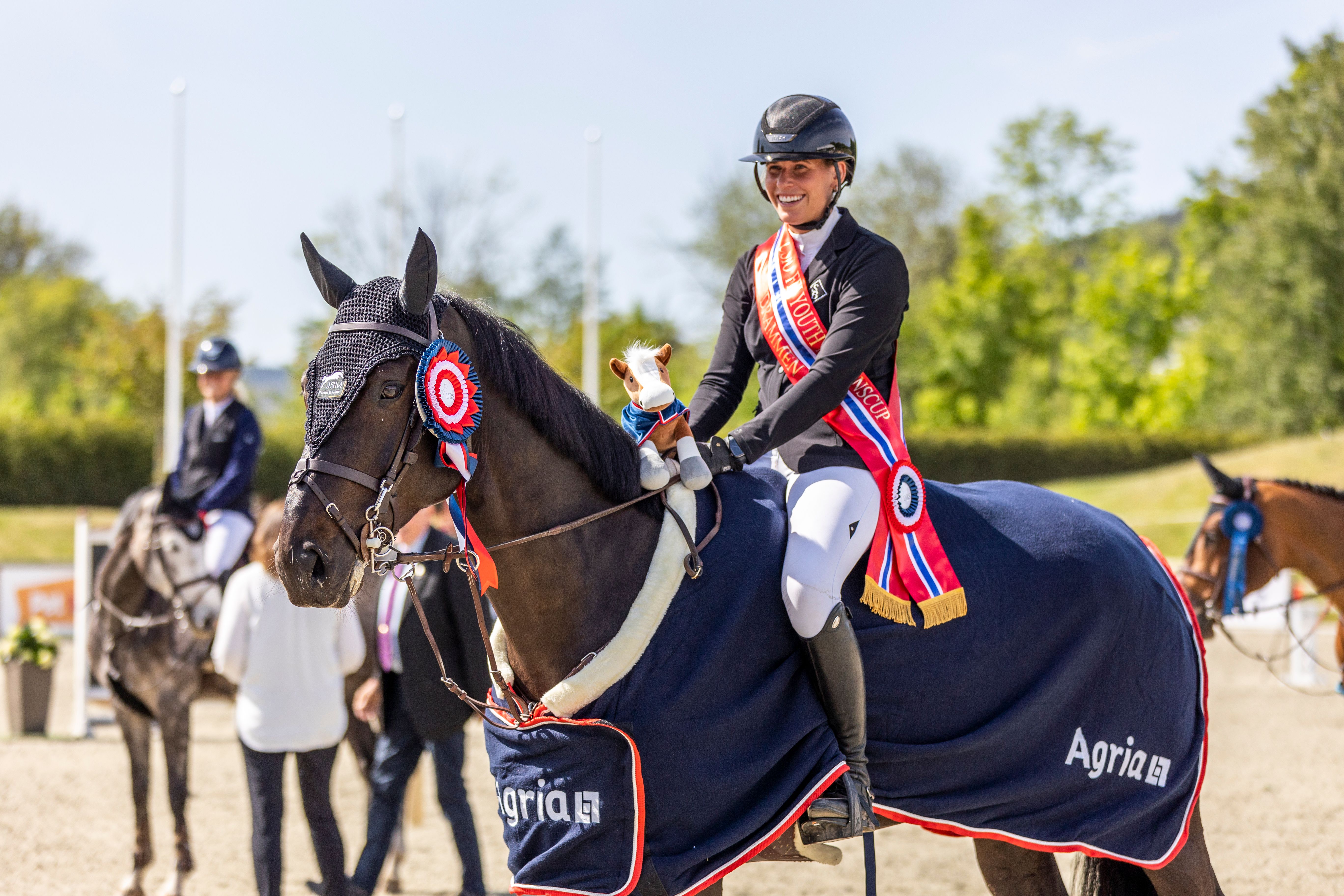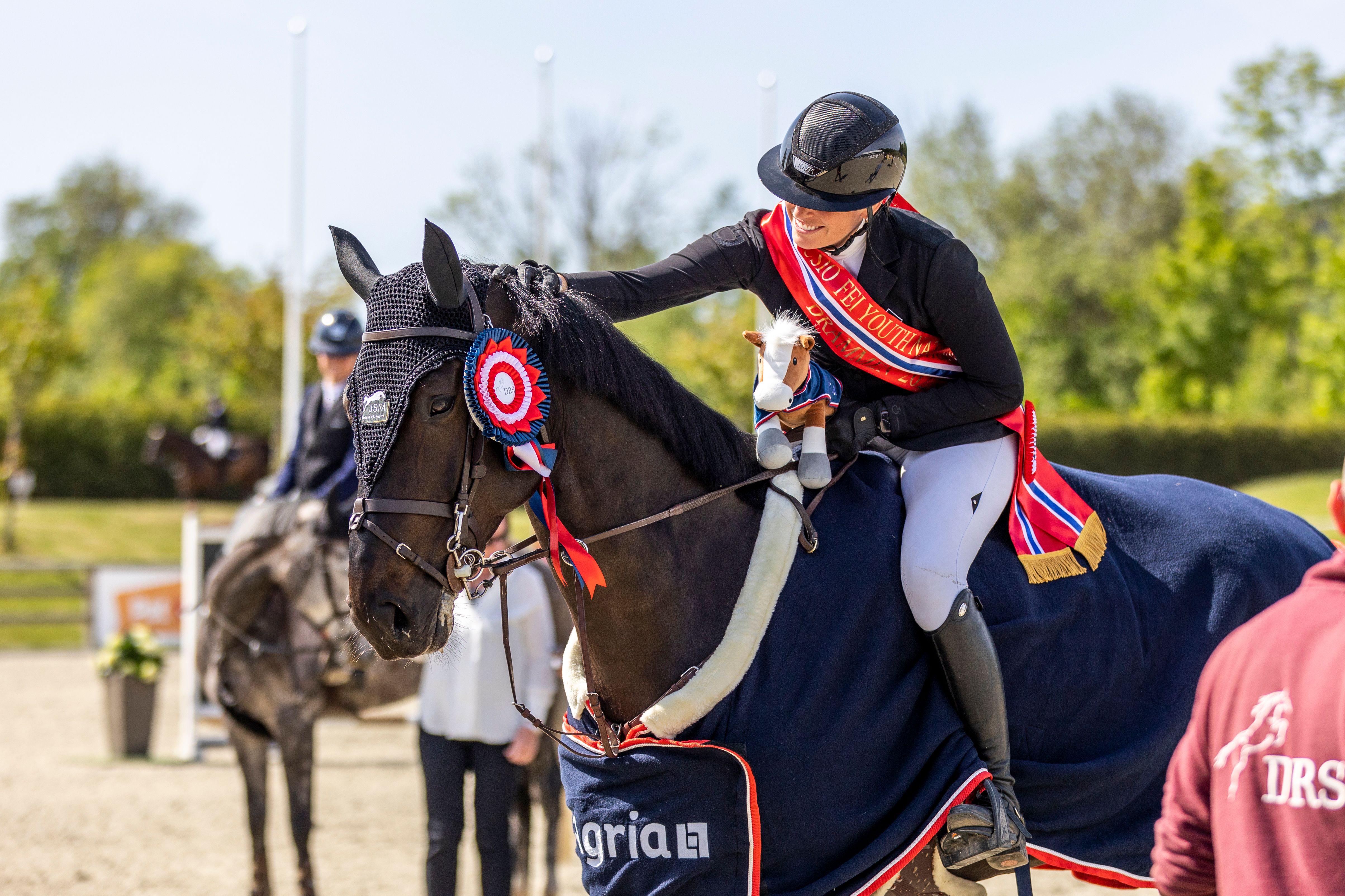 - Det er både viktig for sporten og gøy at vi nå har fått så fine fasiliteter i Norge som her i Drammen, påpeker hun. -Det er fantastisk å kunne få ri på et så fint anlegg, og føle at vi får ta del i et lite stykke utland. Og selv har jeg jo virkelig hatt to veldig fine uker her, avslutter helgens ubestridte unghestdronning.