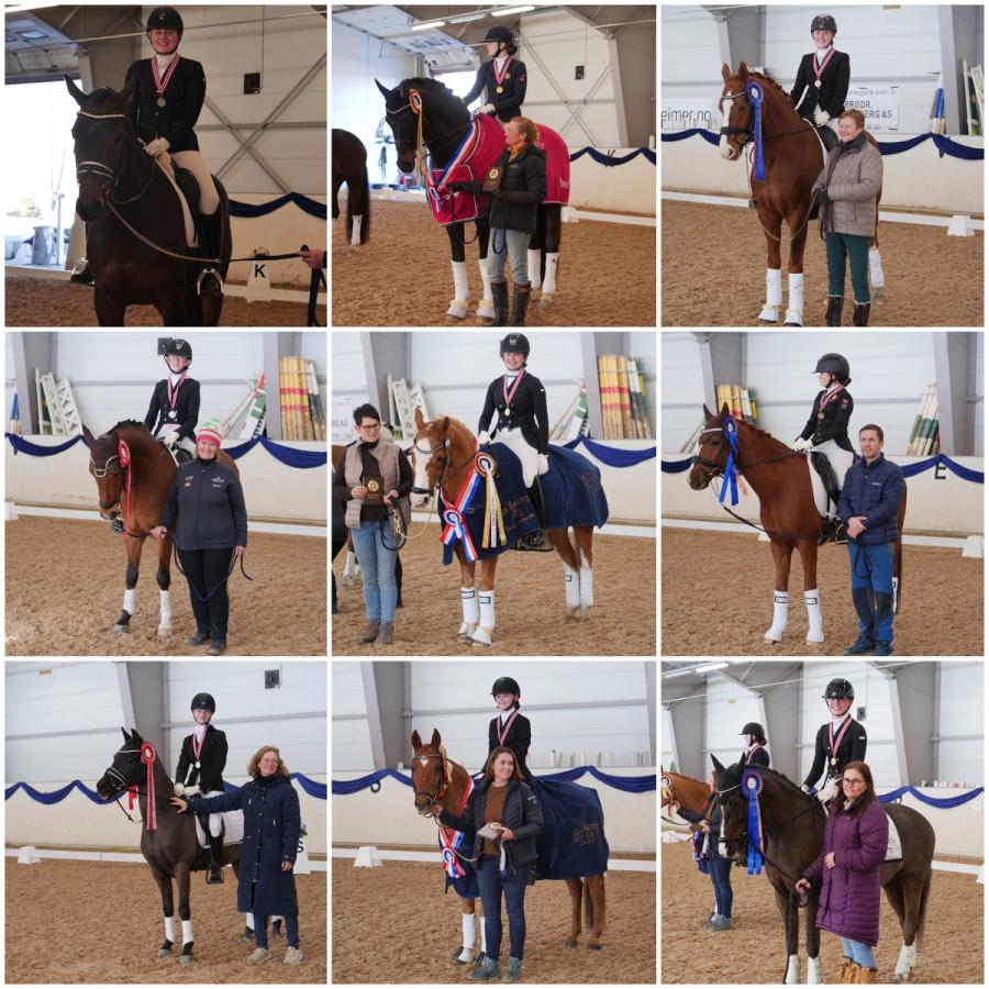 Denne søndagen har tre medaljesett blitt delt ut i regi av Starum Hestesportsklubb, og vi kan dermed gratulere tre nyslåtte, strålende fornøyde hallmestere dressur MB og øvrige medaljører.