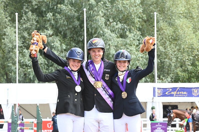 Ungrytterne fra Tyskland, Danmark og Sverige kapret lagmedaljene ved årets EM etter henholdsvis å ha ridd inn til gull med en totalscore på 223.294, til sølv med 217.382 og til bronse med 216.764. Lagledere for topp tre i Hartpury var Cornelia Albrecht, Janne Møller Tode og Tina Due Boje, og startfeltet bød i alt på lag fra ialt 12 nasjoner.