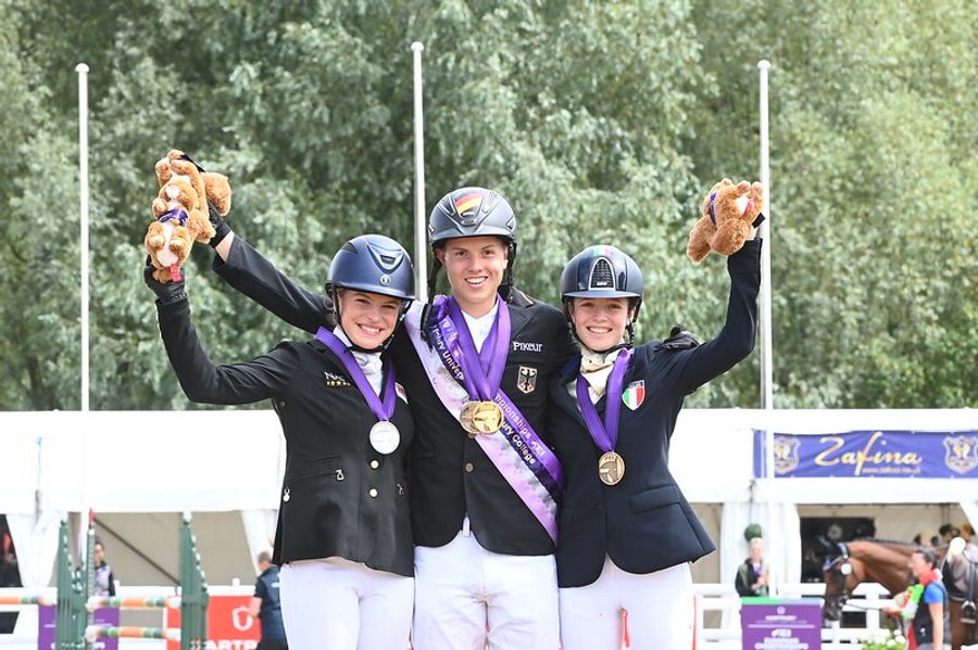 Tyske Mathies Rüder red ni år gamle Bon Ton (Bolshoi x Czarownik) inn til dressurscoren i terrenget, holdt alle bommer oppe på sprangbanen og vant dermed vel fortjent individuelt EM-gull junior med 25.2 i straff. Det individuelle juniorsølvet gikk til hjemmerytter Isabelle Cook og Mexican Law ( Billy Mexico x Mill Law) med 26.6, mens bronsen tilfalt italienske Guilia Margeherita Wilma Pavesi og Crosstown Dancer- sønnen Greenhall Derry River. Dette skjedde imidlertid ikke helt uten dramatikk, da årets bronsevinner leverte en feilfri sprangprøve og dermed vippet foreløpig bronsemedaljør etter de to første delprøvene, tyske Smilla Maline Philipp og Sir Boggles (Samba Hit x Friedenfürst) ned til en niendeplass ved årets mesterskap. At marginene i feltrittsporten er små og feile dyre, levnes med andre ord liten tvil.