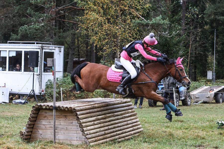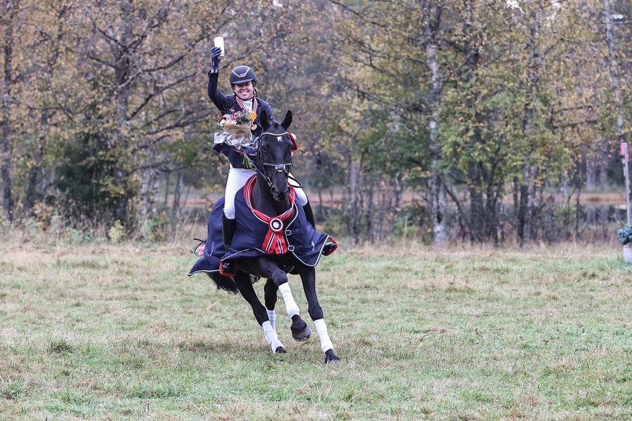 Øvre Romerike Rideklubbs Sophia Tilrem Ayazi/Goldfevers Son (Goldfever II/De Niro, oppdretter Jürgen Westermann) lå som nummer to etter sprangen, men fikk for mange feil i terrenget til å toppe listen – det ble i stedet Marie Trollnes Eidbo/Annabelle Z (Aertbreaker/Voltaire, oppdretter Koops Carlien) fra Brekka Rideklubb som skulle få klatre helt til topps i denne klassen, med 53,3 i straff mot Sophias 58,2. Denne duoen har tidligere toppet i en mesterskapsklasse - den gang i juniorklassen i 2021. Nå gjorde de det altså igjen i klassen for unge ryttere.