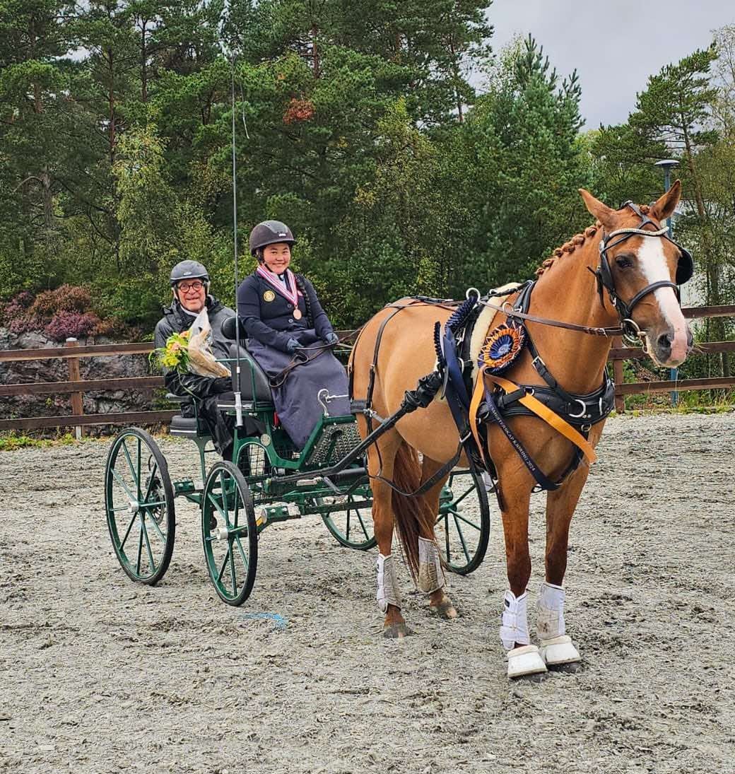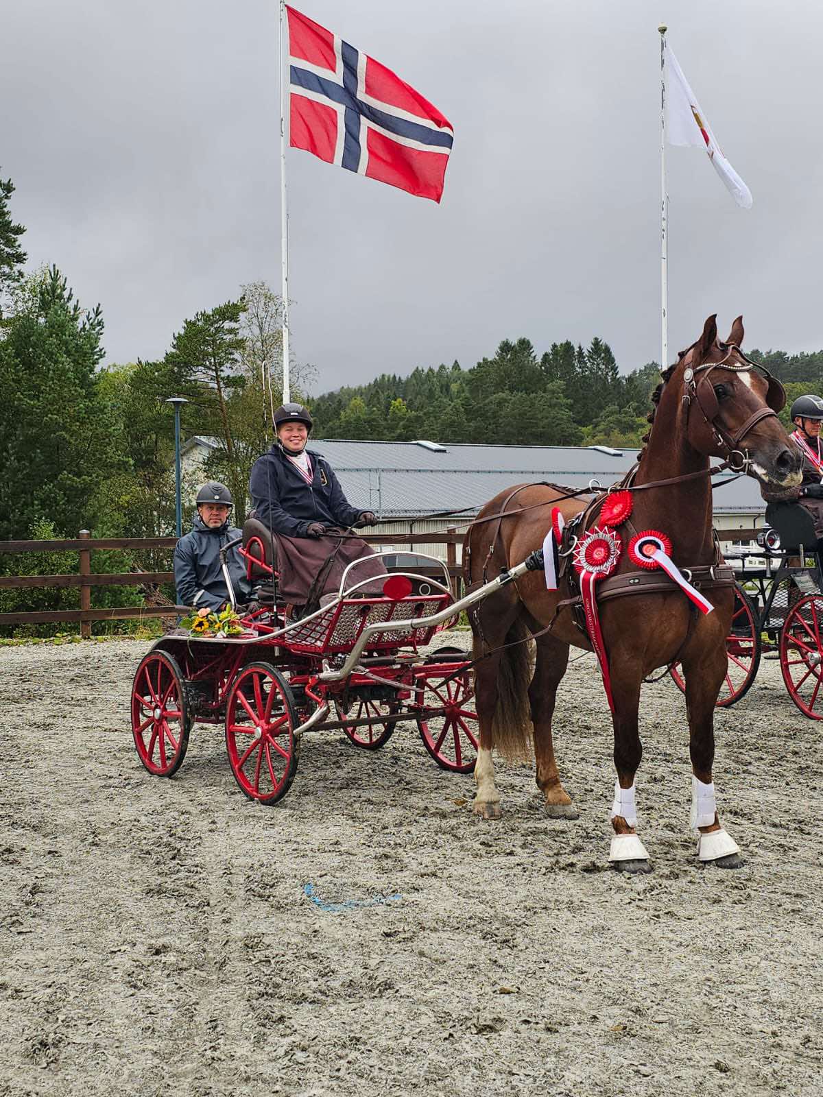 Han sang med for full hals under premieutdelingen – i år gikk gullet i NM sportskjøring senior til Øivind Mikkelsen fra Trollheimen Ride- og Kjørelag.