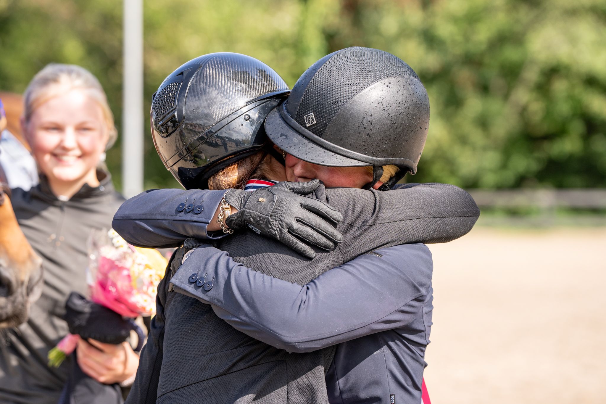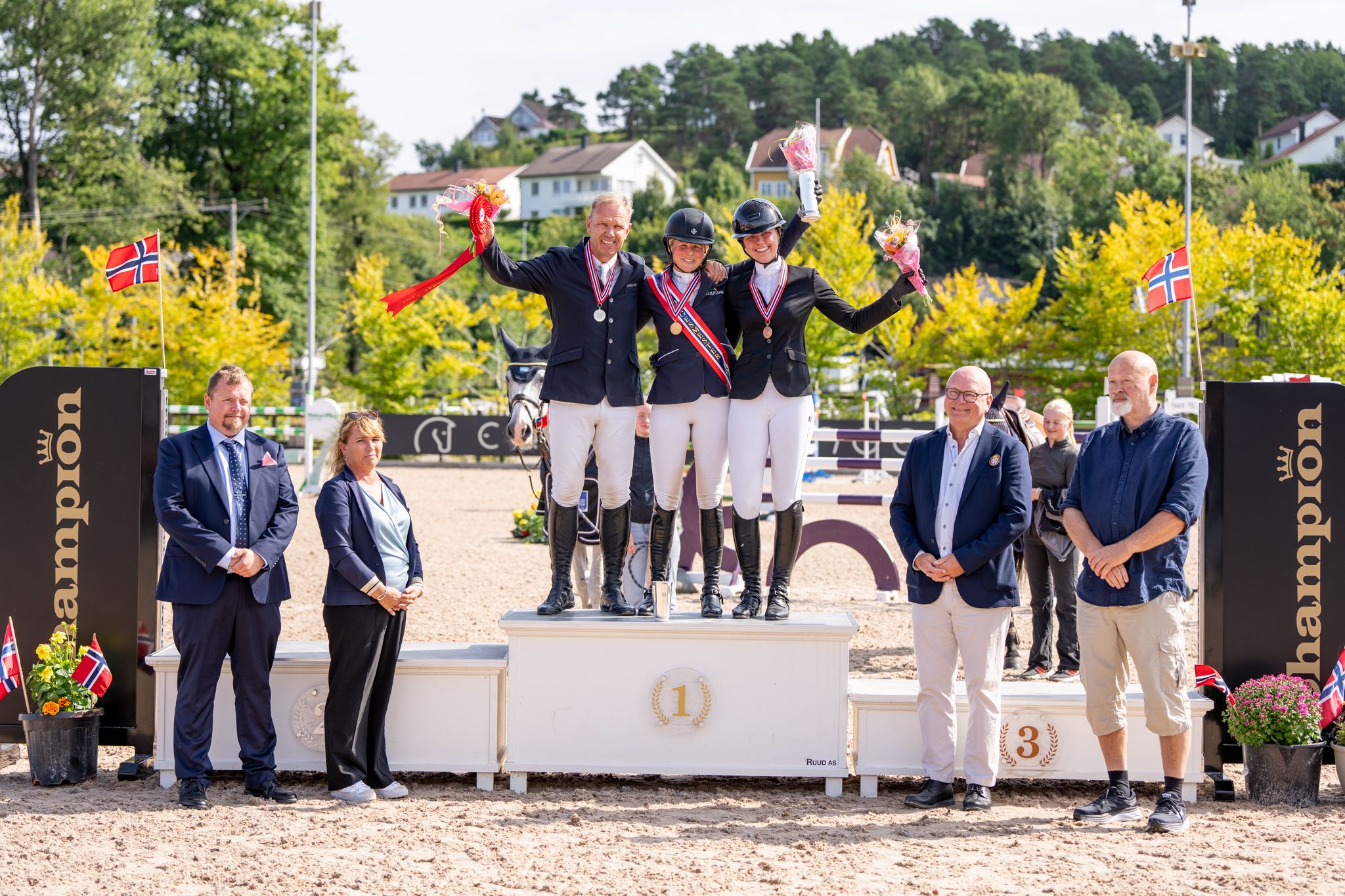 Therese, samboer Dag Ove Kingsrød og hans datter Maria Louise er et godt team, og denne gang la teamet beslag på to tredjedeler av seniorpallen i det nasjonale mesterskapet.Therese er strålende glad for sitt eget gull, men samtidig minst like glad for Marias bronse: - Jeg er utrolig stolt over henne, å gå null i dag, at hun har prestert så solid gjennom hele mesterskapet, og det med en ganske ung hest også – jeg er virkelig så stolt over henne!