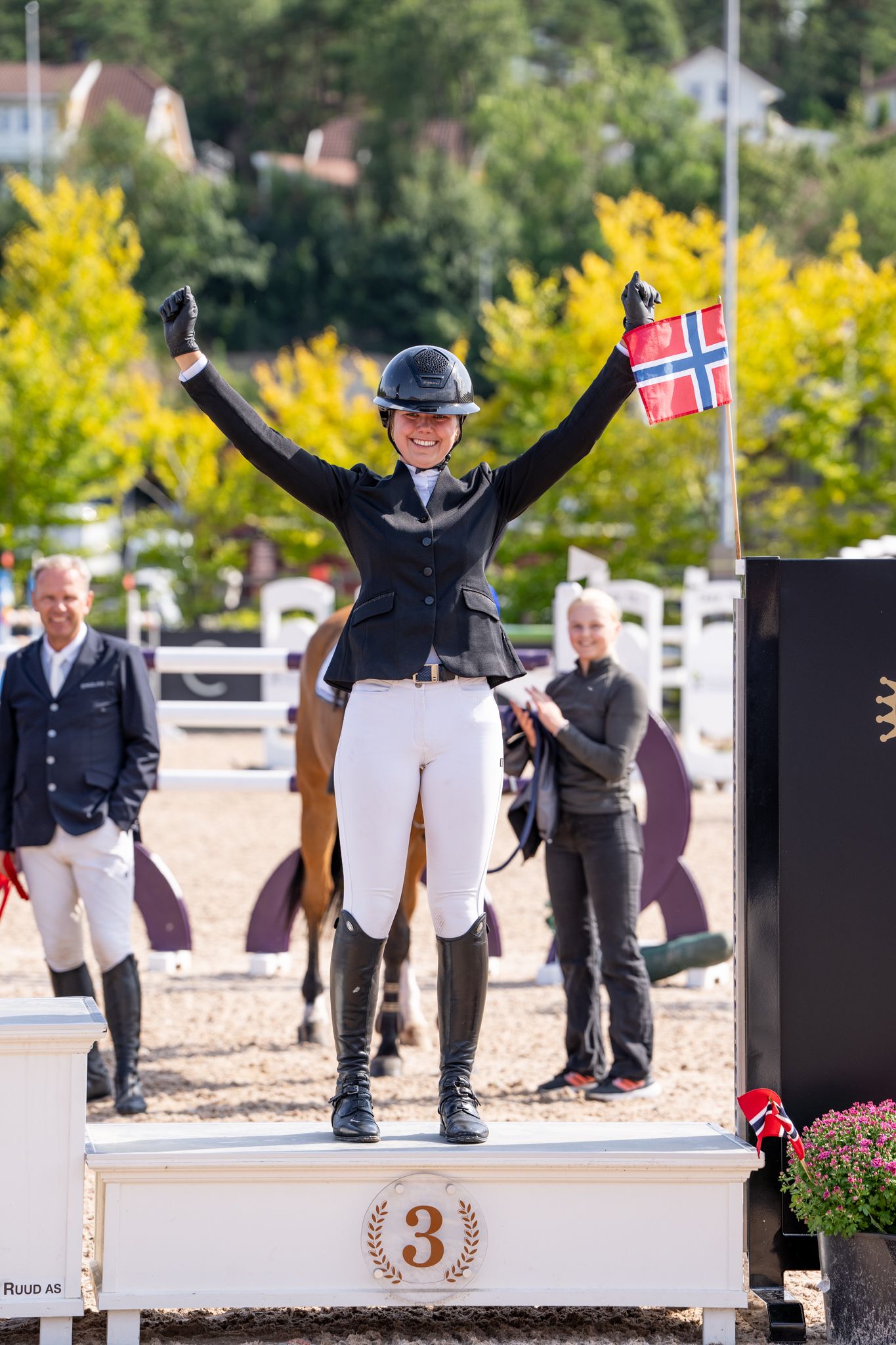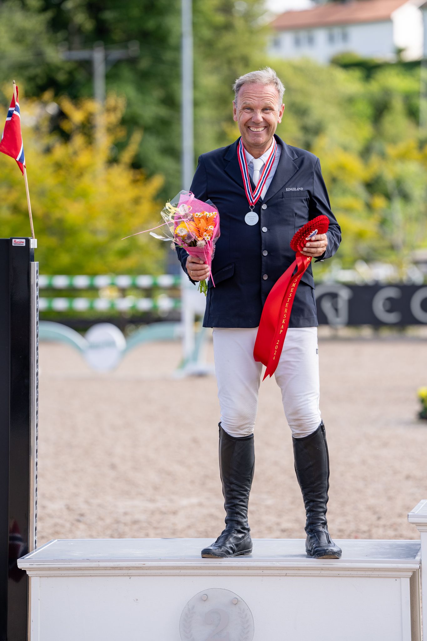 Sarpsborg og Omegn Rideklubb kunne juble over to ekvipasjer på pallen denne gangen, for som en svært god nummer tre kom 22 år gamle Marie Louise Kingsrød med sin relativt unge NWB-vallak Kanto (Kannan/Cento, oppdretter Dag Ove Kingsrød). Ekvipasjen hadde med seg fire feilpoeng fra de innledende rundene ut fra plassering og tid, men i løpet av mesterskapet fikk åtteåringen kun et riv på hinder. Det kom i første finalerunde lørdag, men deretter sørget han sammen med sin rytter for å avslutte helgen i Arendal med en imponerende og feilfri 1,50 m runde.