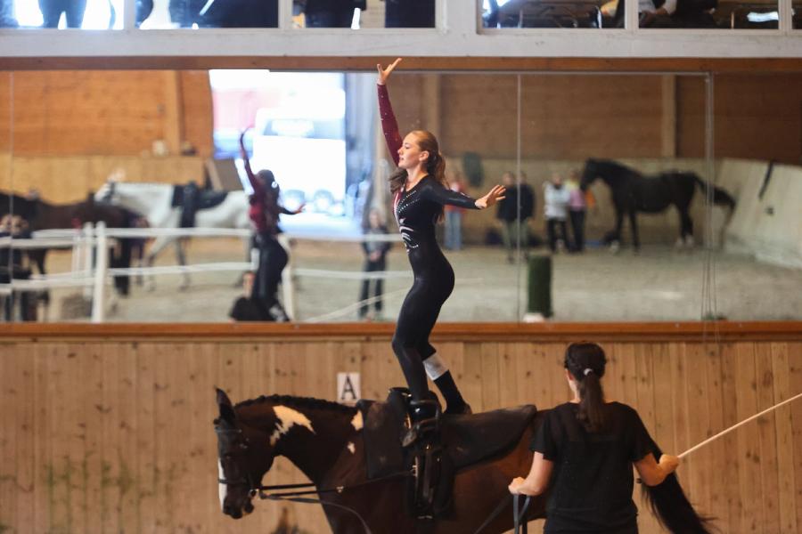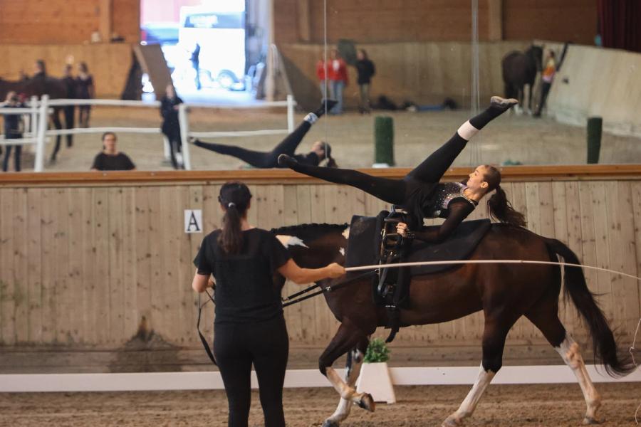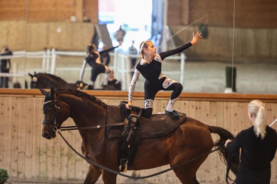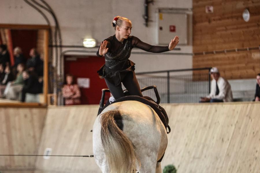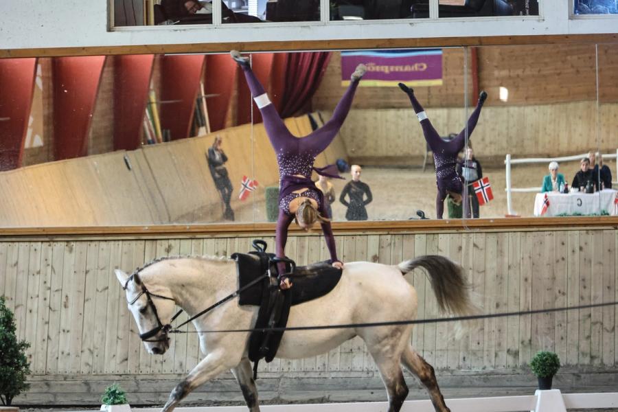 Det var Sørlandsparken Rideklubb på Epona Ryttersenter som åpnet ridehusdøren for årets NM i voltige, der NM-utøverne ble fulgt med argusøyne av dommerne John Eccles, Linda Jenvall og Heddy den Hertough.
