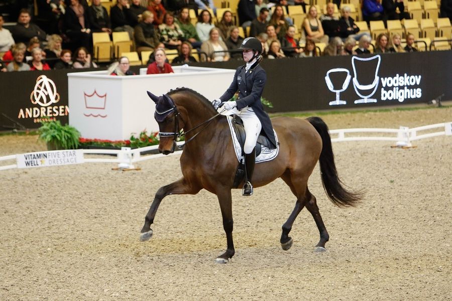 Allerede under gårsdagens CDI3* Grand Prix presentert av Dansk Hesteforsikring sikret Isabel Freese og den elleve år gamle Totilas-sønnen Total Hope OLD (Totilas x Blue Hors Don Schufro) gode prosenter og en sterk plassering . Denne lørdagen fortsatte ekvipasjen å vise seg frem på beste vis i Grand Prix Special presentert av Helgstrand Dressage. Blant annet hentet hele fire av de fem dommerne frem åttetallet for generelt inntrykk, og ikke uventet briljerte hingsten med den gullkantete avstammingen, og som i januar ble utropt til Årets Hingst i oldenburgerforbundet, fremfor noe i galoppdelen av dagens program. Innsatsen ble til sist belønnet med en totalscore på 74.596 prosentpoeng og en sterk tredjeplass i klassen.