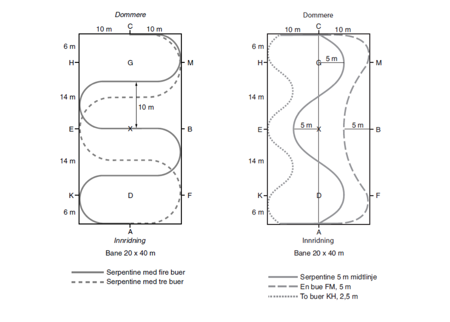 Dressurreglementet KR IV § 445 beskriver vendinger, volter og serpentiner, og viser at disse øvelsene skal forberedes og ris på samme måte. Det går tydelig frem hva dommeren ser etter, og hva du som rytter bør ha i tankene.