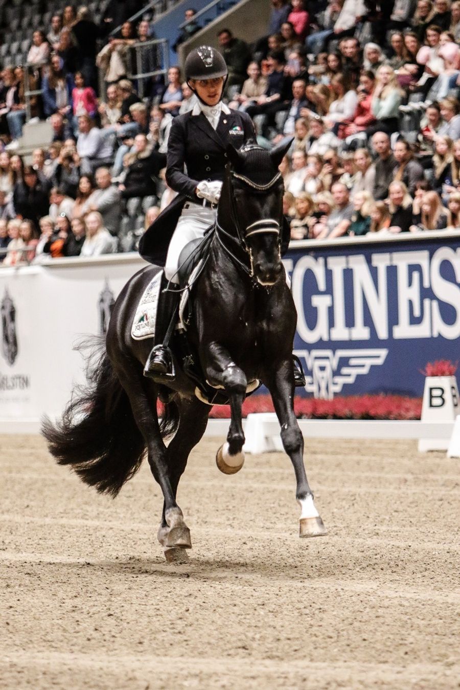 Med power og utstråling viste Total Hope (Totilas/Blue Hors Don Schufro) seg igjen svært godt frem sammen med sin rytter Isabel Freese. Deilige sidebevegelser, mektig passage og en piaff der han setter seg godt – fine serier, herlige galoppøkninger rett inn i piruetter – til sammen ble det 82,417 % og en klar seier.