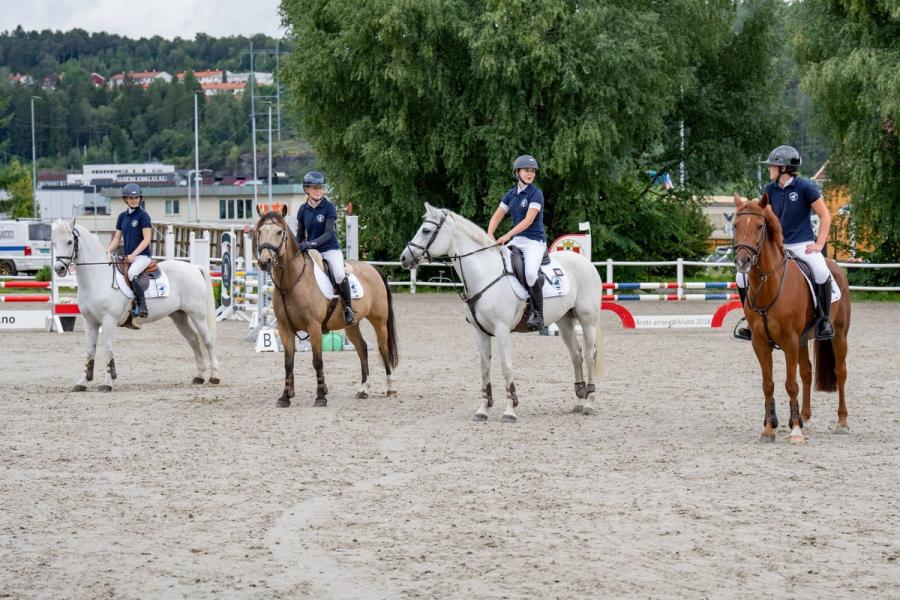Denne lørdagen gikk de fire ekvipasjene på laget fra Grenland Ryttersportsklubb – Sofie Hogner Jahr/ Rosehill Golden Athena, Erle Lønnebakke/ Salsa, Emilie Eftestøl-Aase/ Russel Forest og Ella Homme Claussen/ Kantje’s Wilson - til topps i 1. avdeling. Laget har dermed sikret seg et best tenkelig utgangspunkt for videre suksess på hjemmebane også dette året.