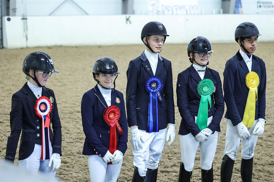I klassen for unge ryttere er det Anne Mathilde Reimer Haga/Treldegårds Sensasion (Blue Hors Hotline/Midt-West Ibi-Light, oppdretter Kirsten og Niels Madsen fra Lysefjorden Rideklubb som har innledet med å sikre seg beste prosentresultat – de vant med 67,947 %. En god nummer to ble Vilde Brekke/Syringa Lerup (Blue Hors Soprano/Blue Hors Don Schufro, oppdretter Michael Heath og Jens Møller) fra Tanum Rideklubb med 66,974 %. Hele fire ekvipasjer endte på et prosentresultat som begynte på 66 % - det er duket for spenning. På en foreløig tredjeplass ligger Tuva Horge-Kapstad/Hivemmie (Apache/Ferro, oppdretter A. Dikkema-Sants) fra Tanum Rideklubb.