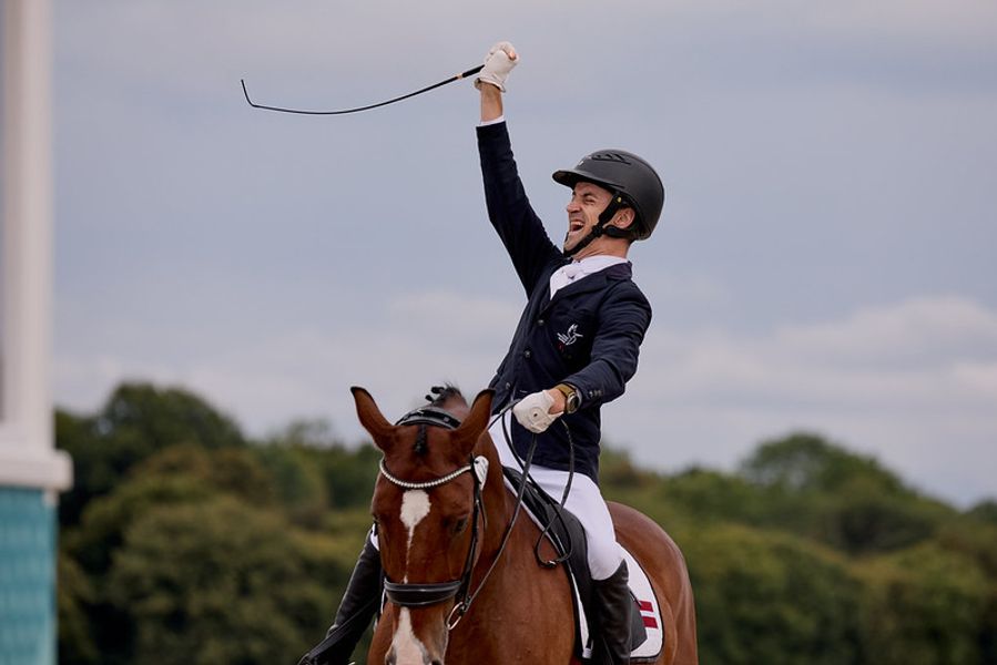 Jens Lasse og Aladdin (Akinos/May Sherif, oppdretter Rosa Nielsen) var andre rytter til start i dagens klasse for grad 1, som var første individuelle medaljesjanse. Den første individuelle klassen telte ikke for lag, men de åtte beste i hver grad gikk videre til lørdagens individuelle freestyle finale.