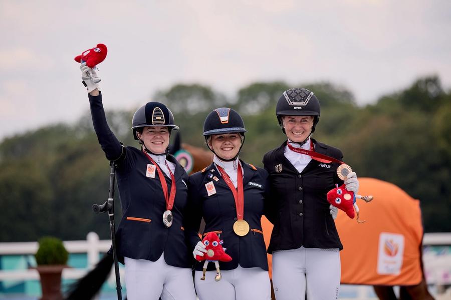 Svært godt og like nederlandsk var det på sølvplass, ved rutinerte og regjerende paralympiske mester Sanne Voets/Demantur (Vivaldi/Elcaro, oppdretter A.M. Reuzenaar) som ble belønnet med 76,528 % for sin innsats. På bronseplass fulgte tyske Anna-Lena Niehues/Quimbaya 6 (Quatertime/Samarant, oppdretter Josef Bramlage) med 75,222 %.