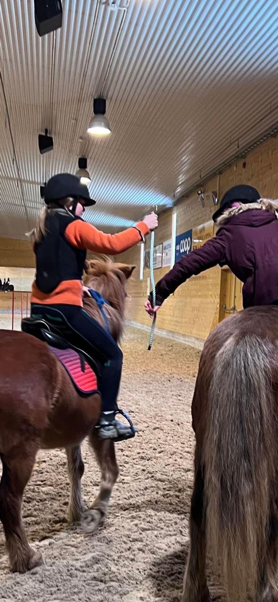 Instruktøren selv ble utfordret av deltagerne til å ri en av ponniene som var med på kurset – og her ble det selvfølgelig «challenge accepted» fra Veronika. Veronika loset ponnien både gjennom slalåm, mug shuffel og liter lifter. Ponnien forstod fort hva det handlet om med rutinerte Veronika i salen. -Ponnien var rask så fort han skjønte han fikk lov til å løpe, sa en andpusten Veronika etter økten.