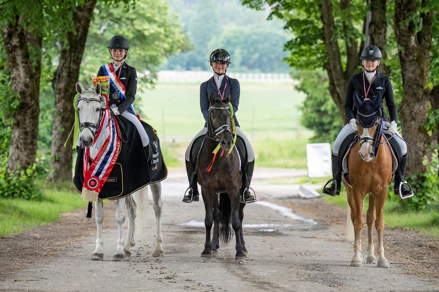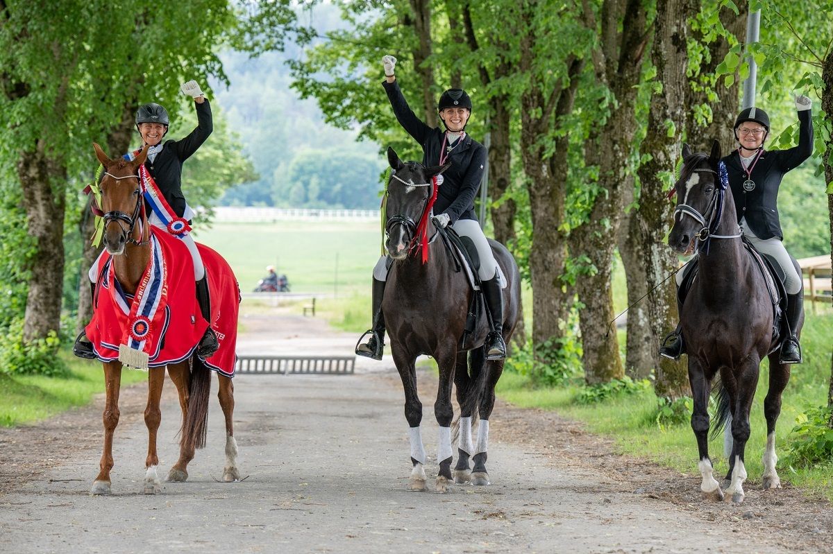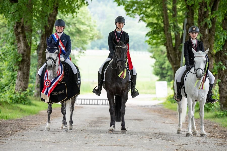 Stevnehelgen hos Grenland Ryttersportsklubb resulterte i fem nye individuelle landsmestere i dressur i sommersolen – se medaljørene her.