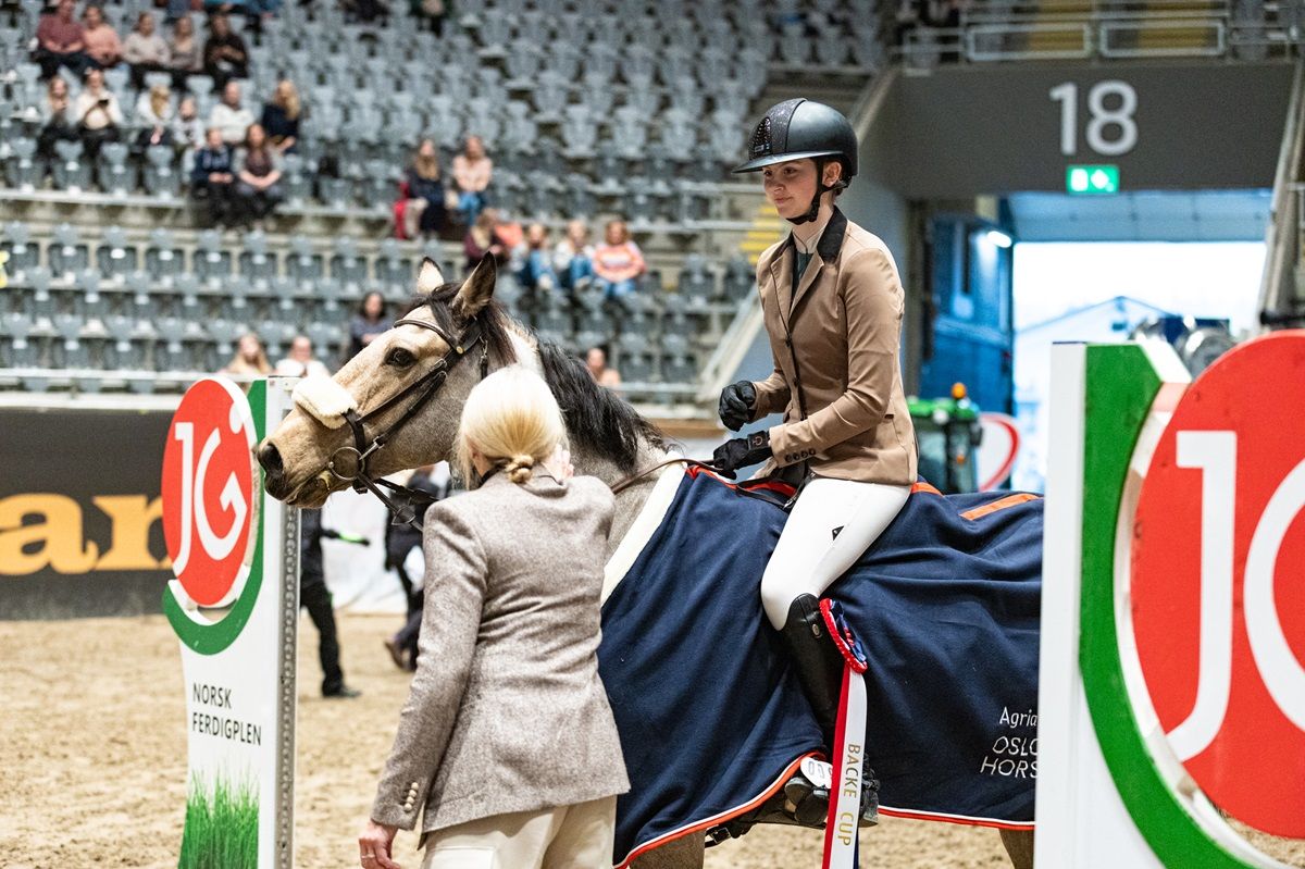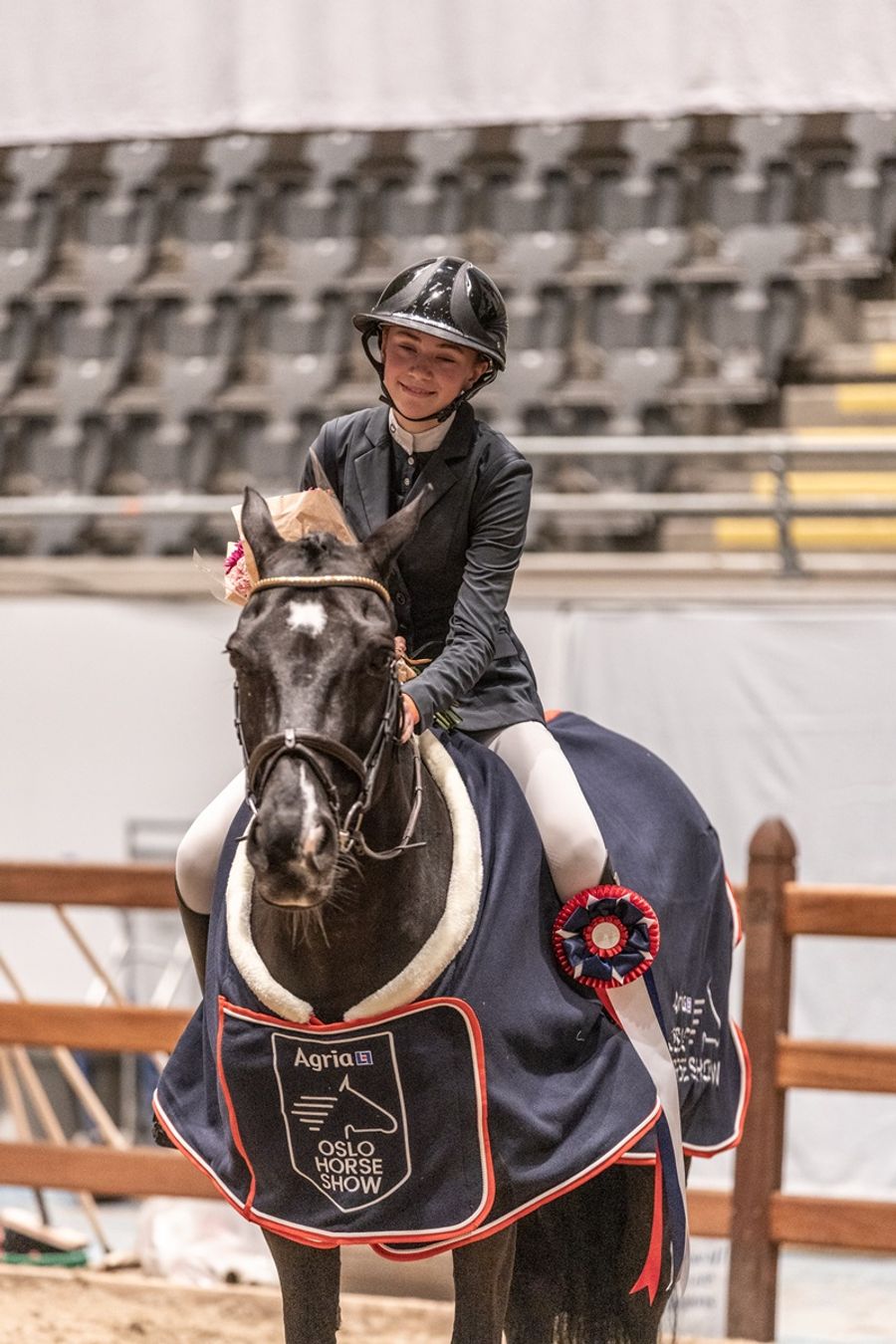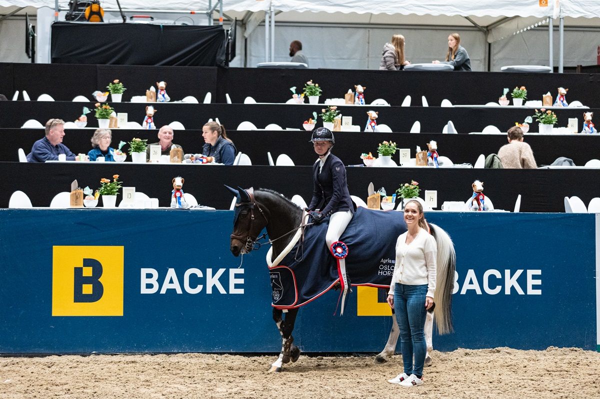 Det ble Julie Schjelderup-Høye med Hogan’s Pride som toppet resultatlisten i lørdagens MB+5 Backe Cup for ponni kategori 1 under Agria Oslo Horse Show. – Han ble bare en drøm å ri på her, sa rytteren om sin vinnerponni.