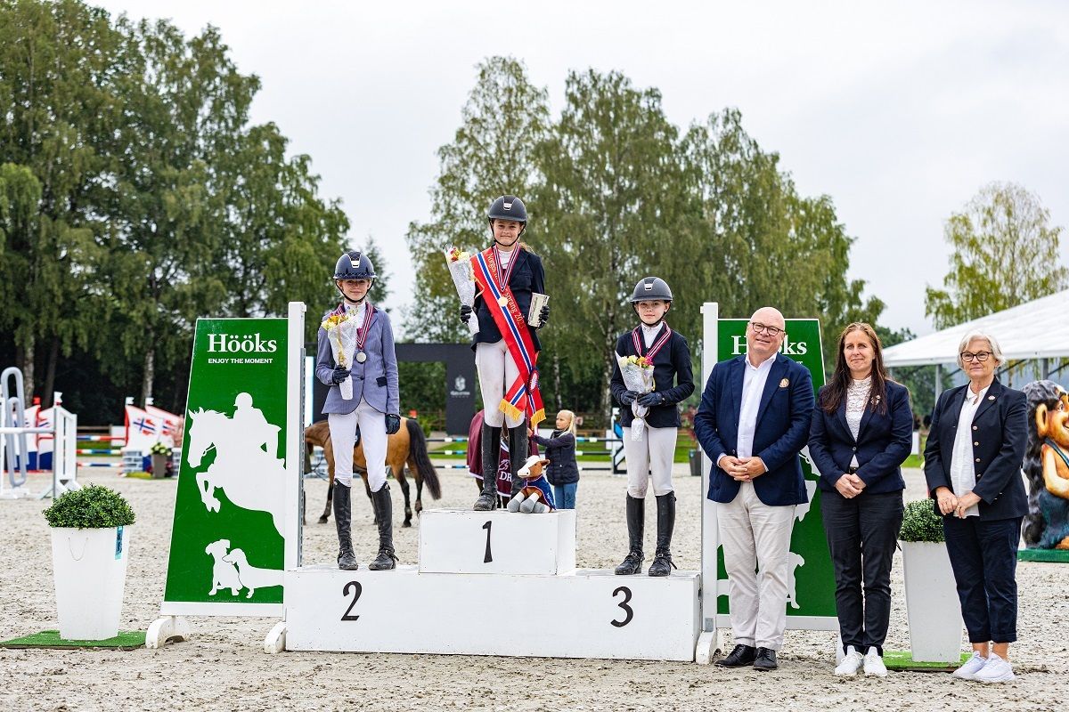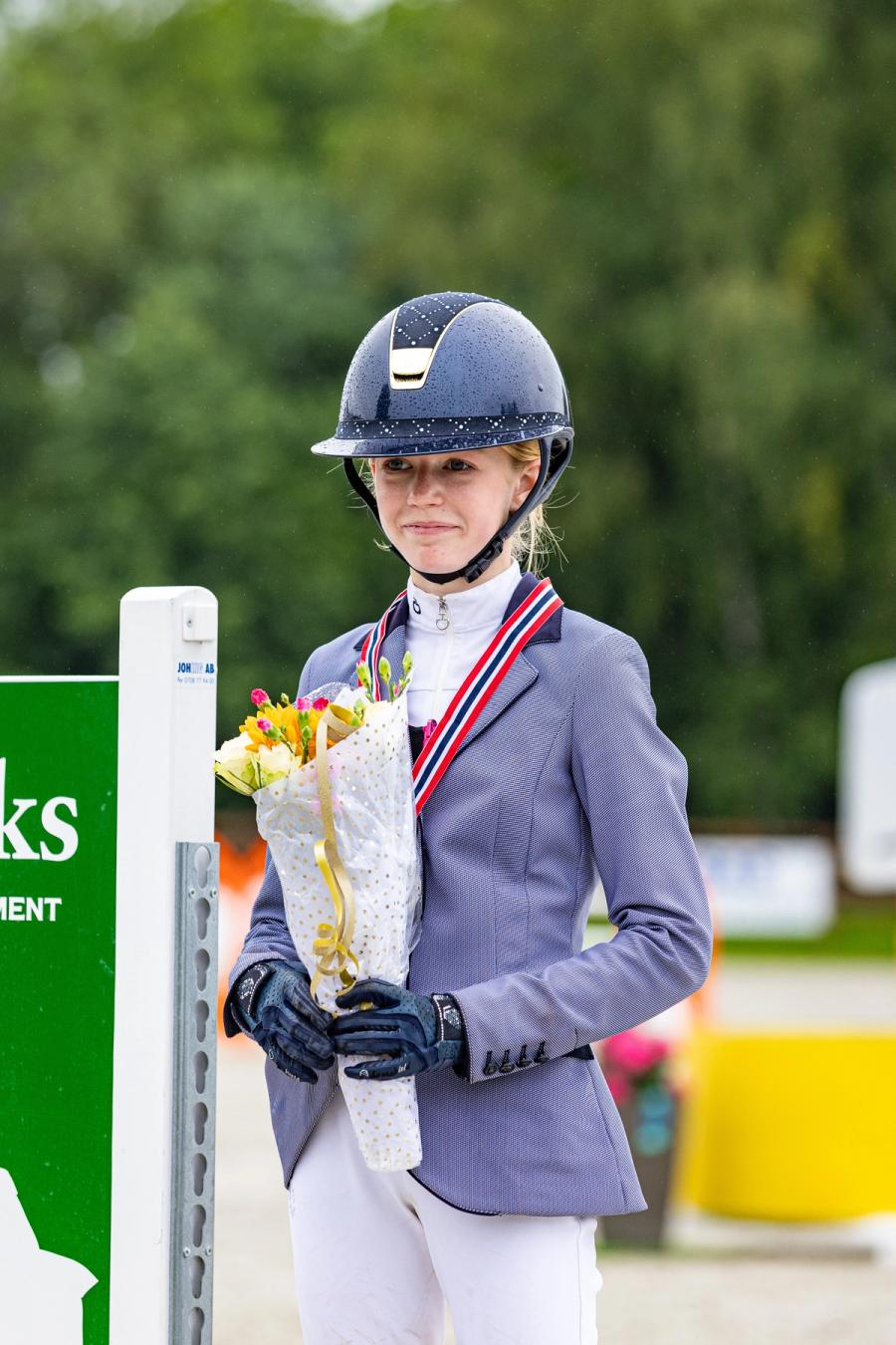 To ekvipasjer måtte ut i omhoppingen om gull og sølv etter en helt feilfri merittliste gjennom mesterskapet - Sofie og Hermine Bjune-Skogevall/Coolfin Daisy fra Jarlsberg og Melsom Rideklubb. Sofie og Duffy gikk igjen null og la press på Hermine med en god tid - nullen satt for Hermine og Daisy, men Sofie og Duffy var best på tid og tok gullet med tiden 33,39 sekunder mot Hermines 35,47 sekunder.
