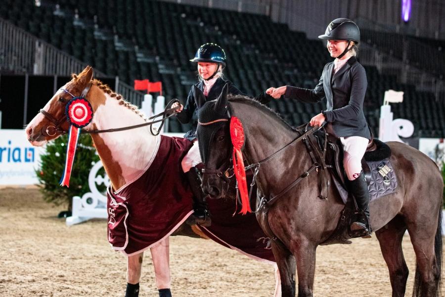 At det er gøy å være ponnirytter på flotte NOVA Spektrum, er både Aurora Victoria Tellefsen og Eveline Pettersen enige om. Så langt har de to klubbvenninnene fra Grenland Ryttersportsklubb tatt seg av topplasseringene i ponniklassene, men bare det å få være med, er som selveste juleeventyret.