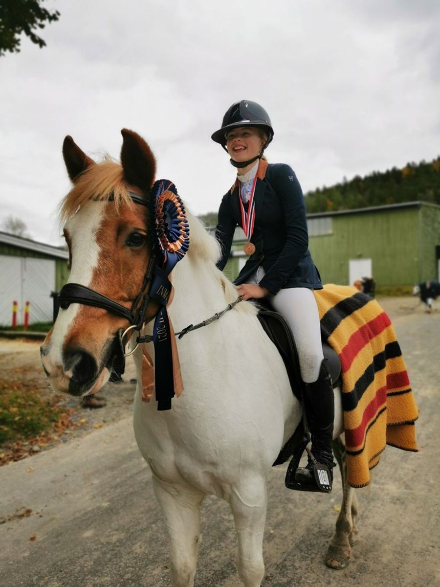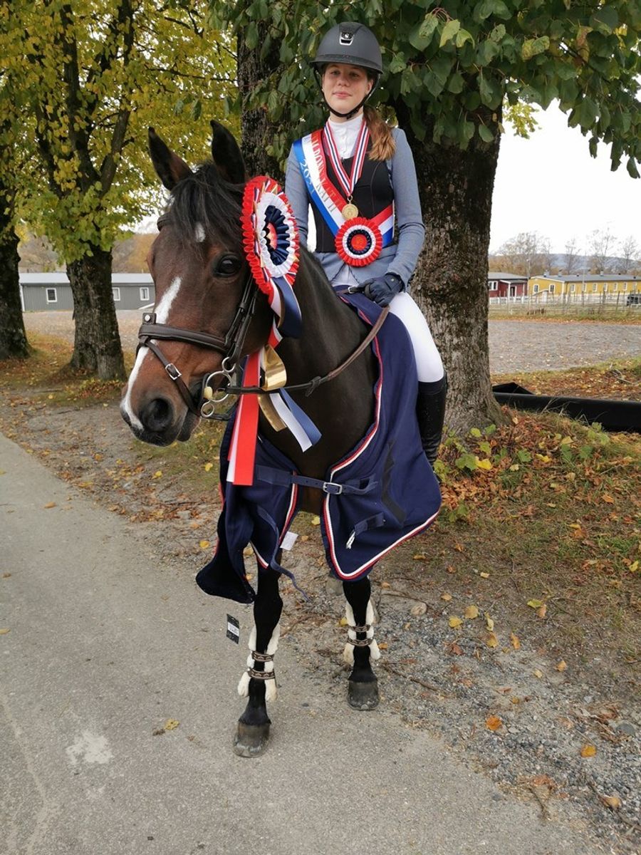 - Jeg var litt nervøs da jeg skulle inn til omhopping, og særlig da Sofie gikk null først, men jeg måtte jo bare kaste meg ut i det, smiler årets sølvjente som også tok sølv i NM utendørs. - Det er jo alltid litt sånn når man konkurrerer at man blir litt nervøs, men dette var første gang jeg red omhopping om medalje, så jeg er veldig, veldig fornøyd, avslutter 13-åringen.