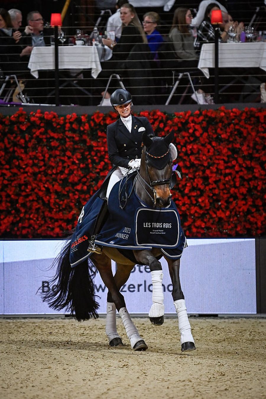 Og stor sport ved to tyske dressurdronnningene i FEI Dressage World Cup™ presentert av Grand Hotel Les Trois Rois, det ble det så absolutt. Lørdag red Jessica von Bredow-Werndl inn til seier i FEI Grand Prix med Tsf Dalera BB (Easy Game x Handryk) til 83.456 prosentpoeng, mens Isabell Werth ble nummer to med Dsp Quantaz (Quarterback x Hohenstein) etter å ha blitt belønnet med en totalscore på 78.261. Søndag gjentok de to bragden, denne gangen som vinner og nummer to av FEI Grand Prix Freestyle med henholdsvis 90.795 og 85.650 prosentpoeng.