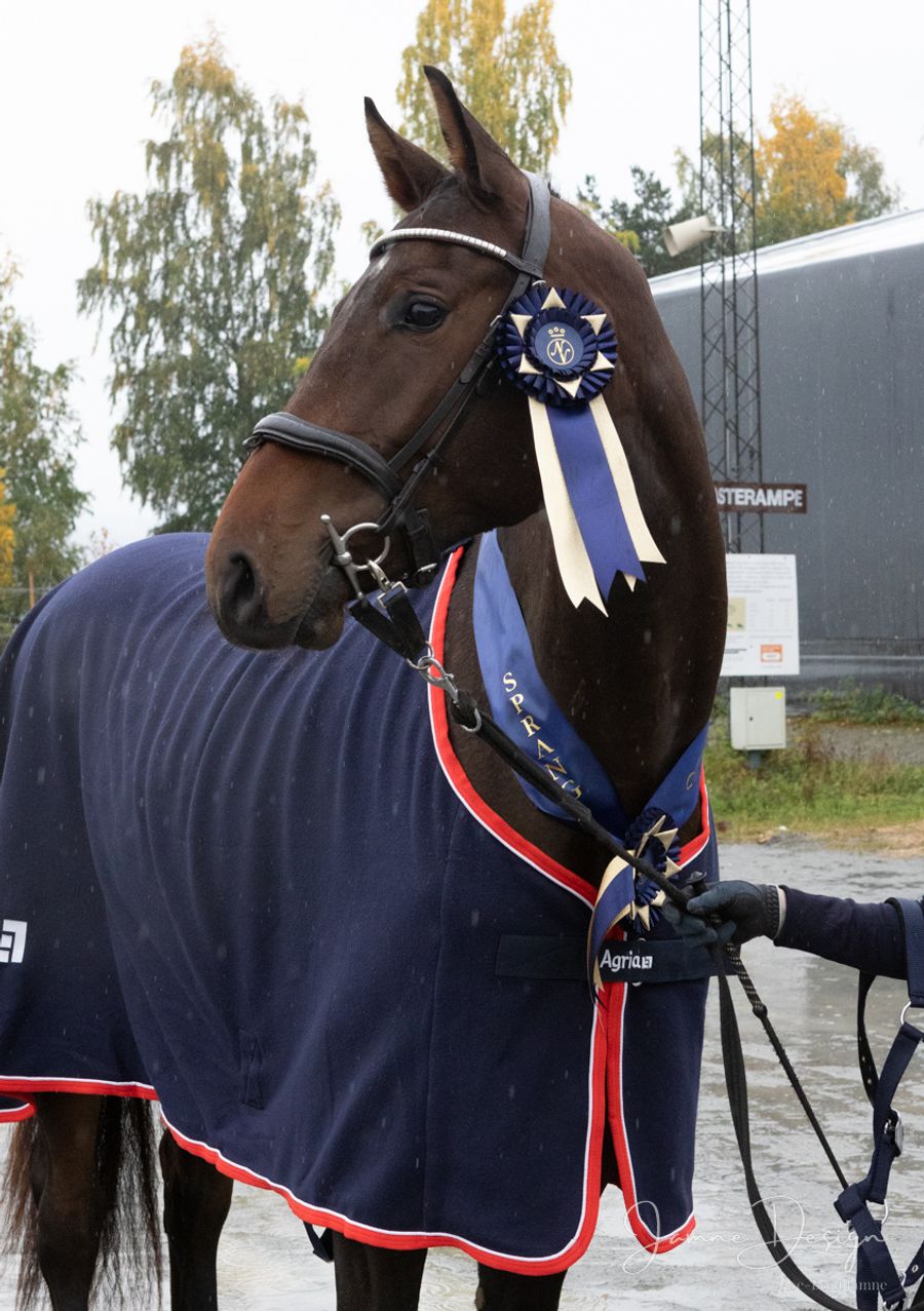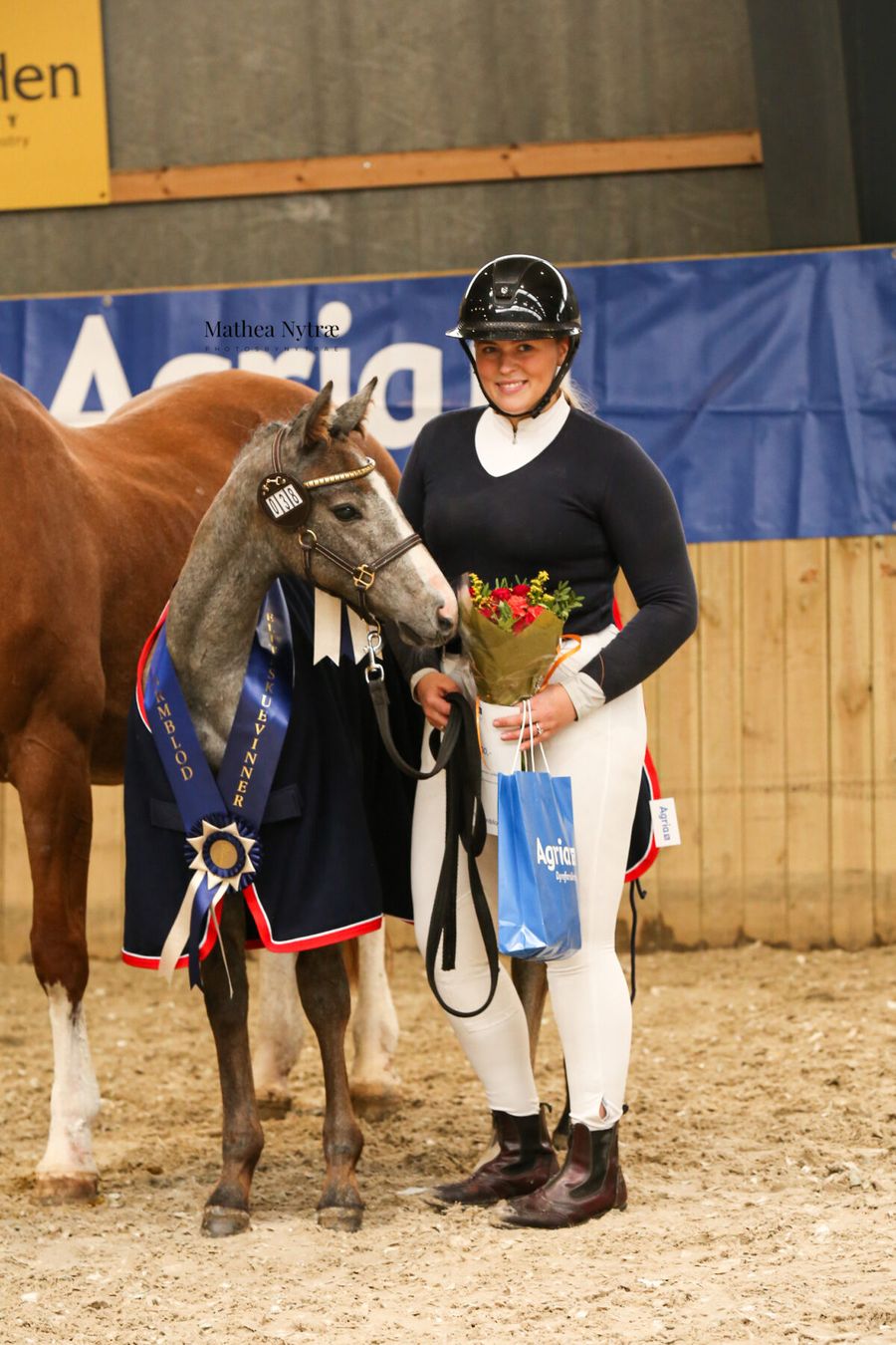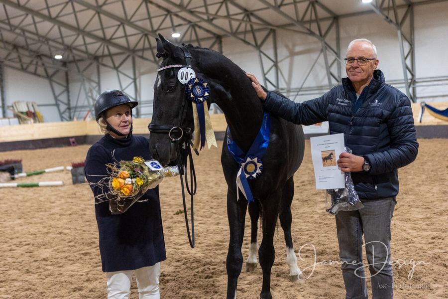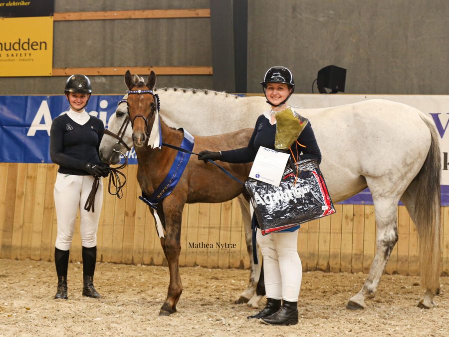 På tredjeplass fulgte ytterligere en dansk varmblods hoppe, Tophøjs Fiona (Floriscount/Tailormade Temptation, oppdretter Anette Nilausen og Niels-Jørgen Johansen). Rytter Hermine Thidemannsen Schüssler (Borge Rideklubb) red denne røde hoppen inn til 71 % blank. Hoppens eier er Hermine, Hege og Henrik Schüssler.