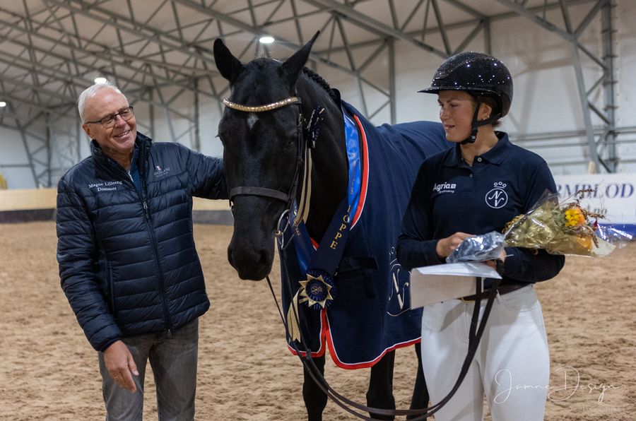 Sammenlagt ble fasit 149,5 for Engebretsen og hennes NV-vallak For De Flirty – og med det tok denne ekvipasjen seieren i Norsk Breeders Trophy. Nummer tre i Breeders Open – og nummer to i Norsk Breeders Trophy – sammenlagt med 142 poeng ble NV-vallaken Bastian (Skovens Rafael/Zalmiak Firfod). Oppdretter, eier og rytter var Anne Kristine Hvinden-Haug.
