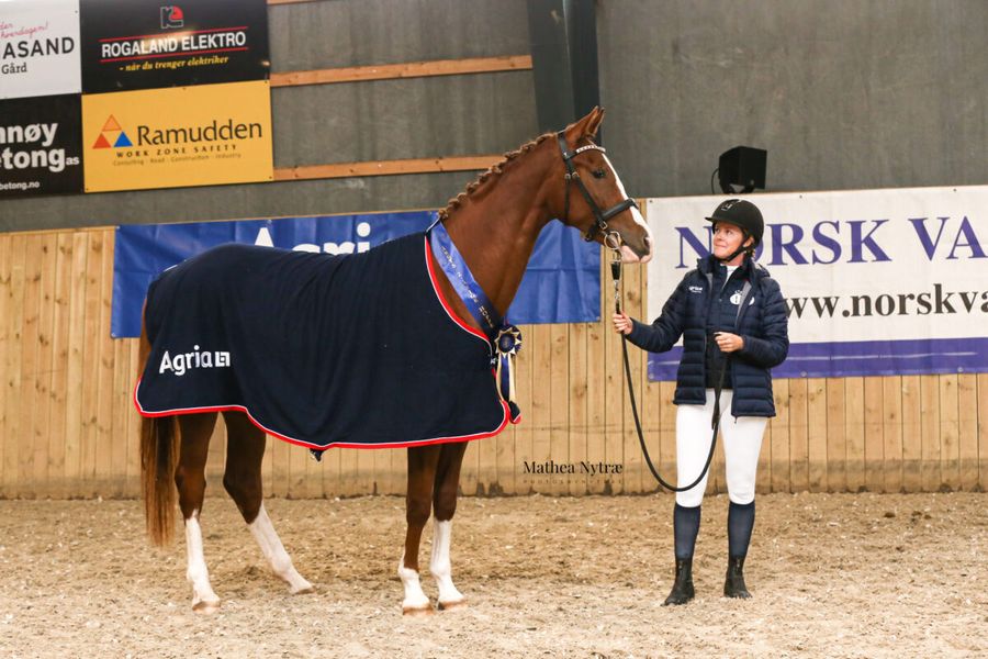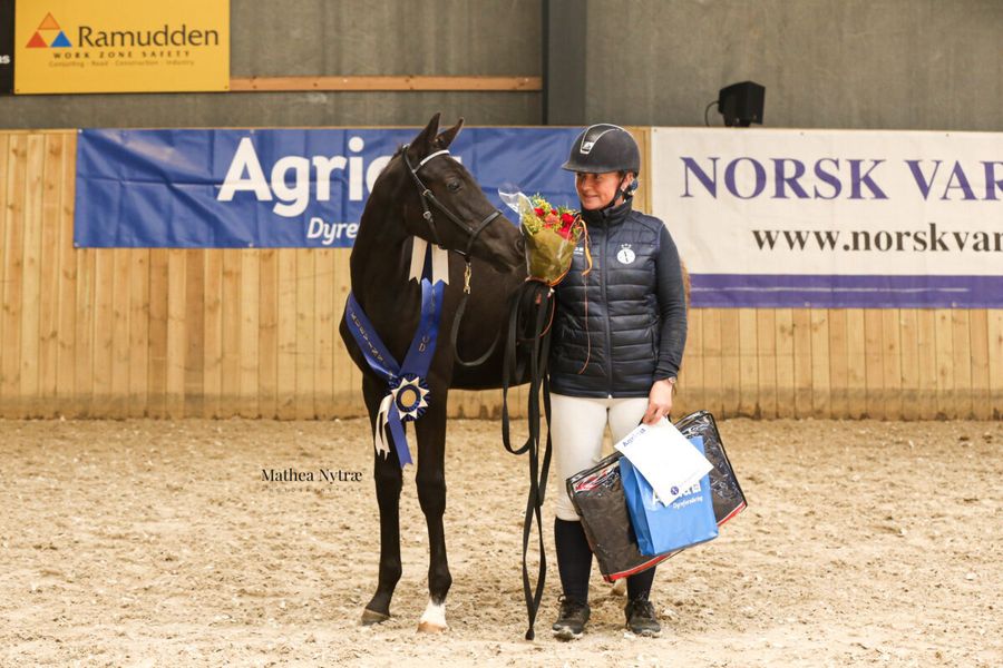 Andreplassen gikk til DWB-hoppen Myra’S Diany (Romeo/Blue Hors Zack) med rytter og eier Ida Svenkerud fra Nittedal Rideklubb. Denne er avlet av Egil og Nikoline Devig samt Trine Sjursæther. Denne ekvipasjen oppnådde 71,800 %.
