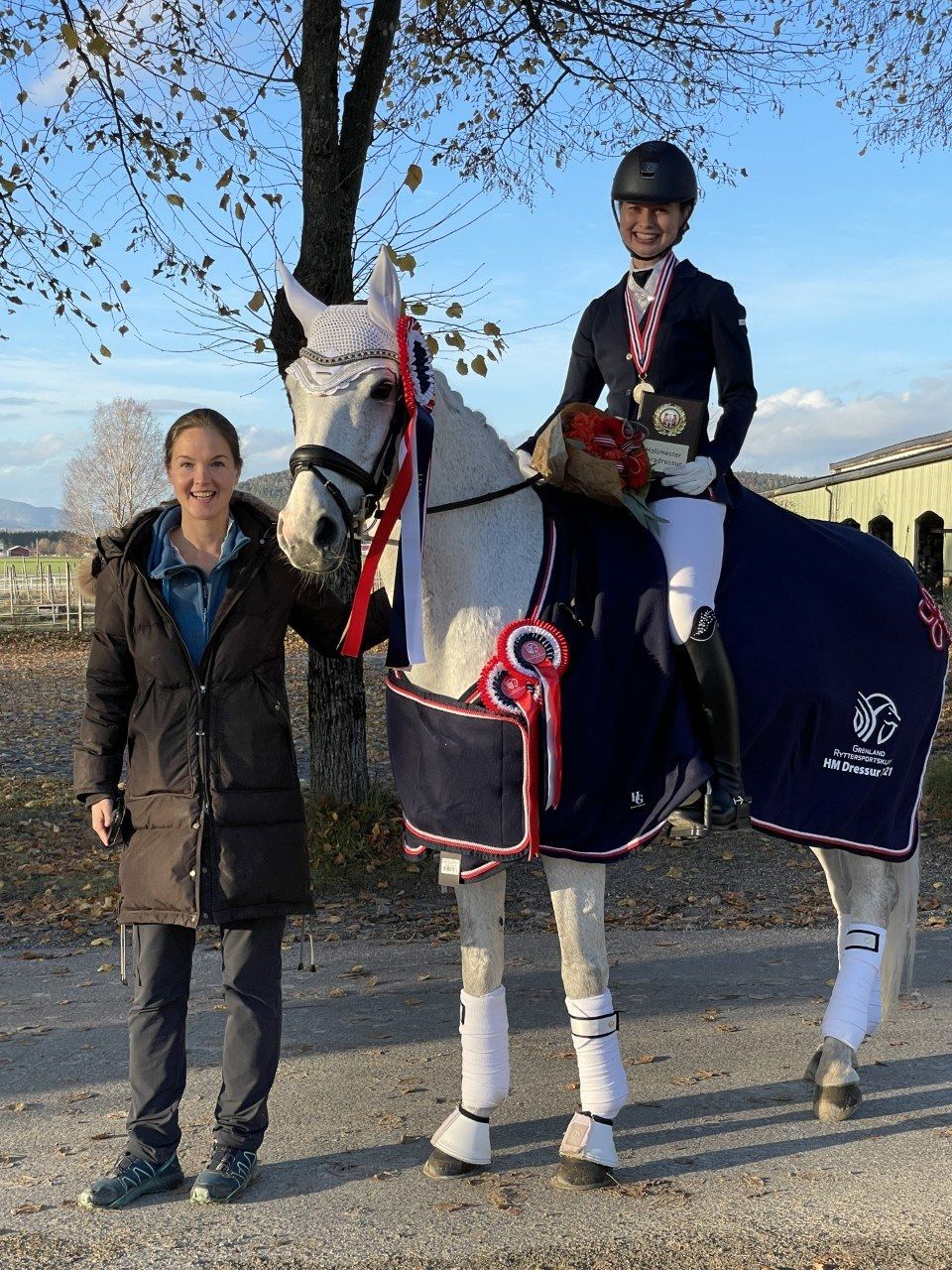 -Jeg passer på å ri tur før og etter trening uansett vær, og vi er vant til regn i Bergen, sier Kirsten med en latter. -Jeg har et godt team rundt meg med trener, hestepasser, dyrlege, smed og hestefysioterapeut. Jeg har tro også på å ri på et variert underlag. Det er to forskjellige underlag i ridehallene, så jeg bytter på banene.