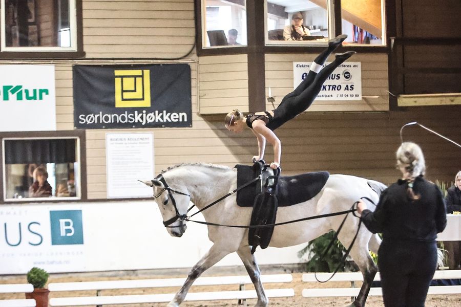 Søndag ble en intensiv helg i voltigens tegn avsluttet med historiens første internasjonale voltige-stevne på norsk jord. Sterke prestasjoner preget den vellykkede stevnedagen i ridehallen hos Arendal og Grimstad Rideklubb.