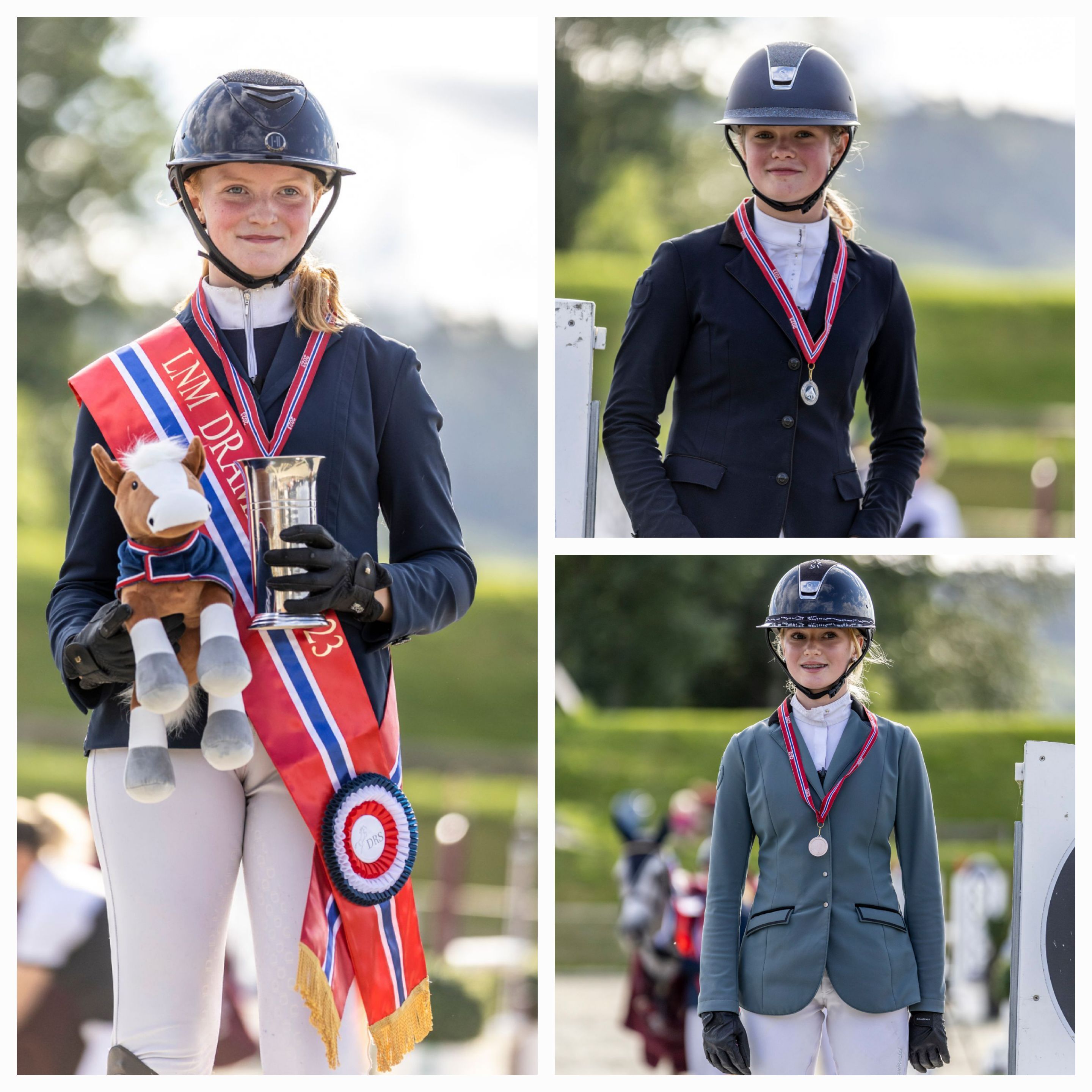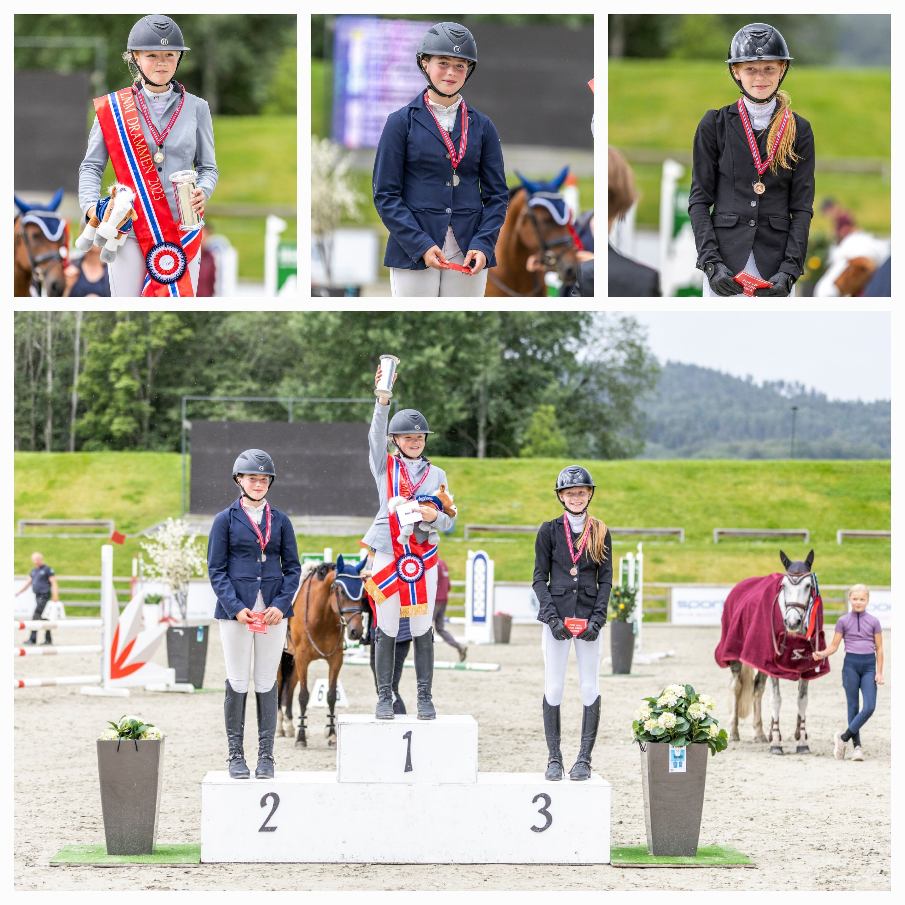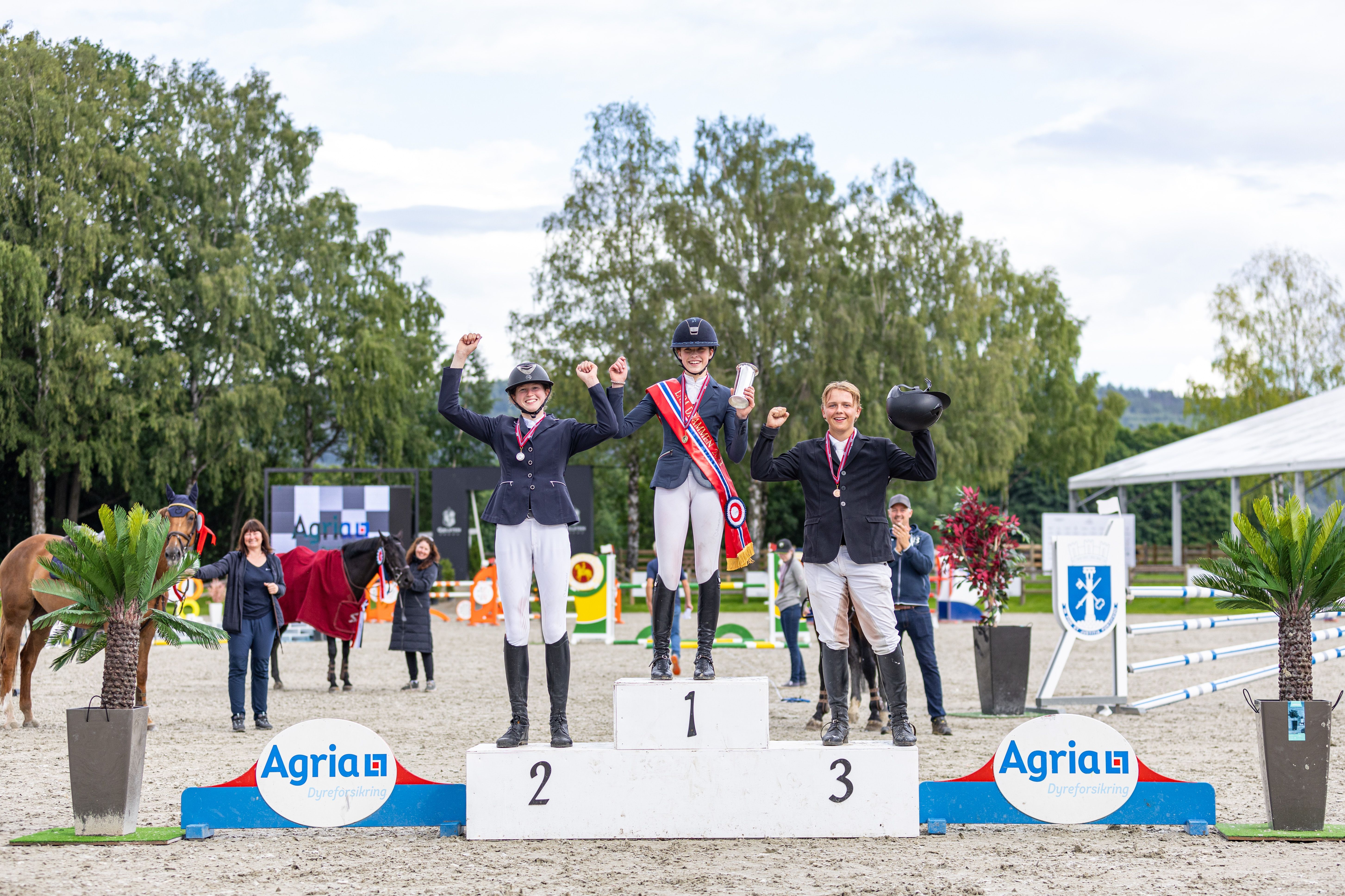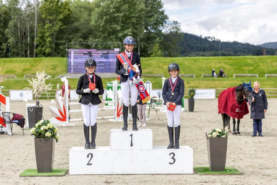 De unge rytterne i landsmesterskapet for LA ponni for kategori 3 og 2 presentert av Hööks måtte på sin side ut i omhopping mot klokken for å avgjøre medaljefordelingen. Gullet gikk til Hanna Elisabeth Jackhelln med Golden Spirit fra Skedsmo Rideklubb, mens de to lagvenninnene Bertine Hagen Berentsen og Linnèa Paulsen fra Drammen Rideklubb sikret sølv og bronse med Soxs Pocket Rocket og CC Sergeant.