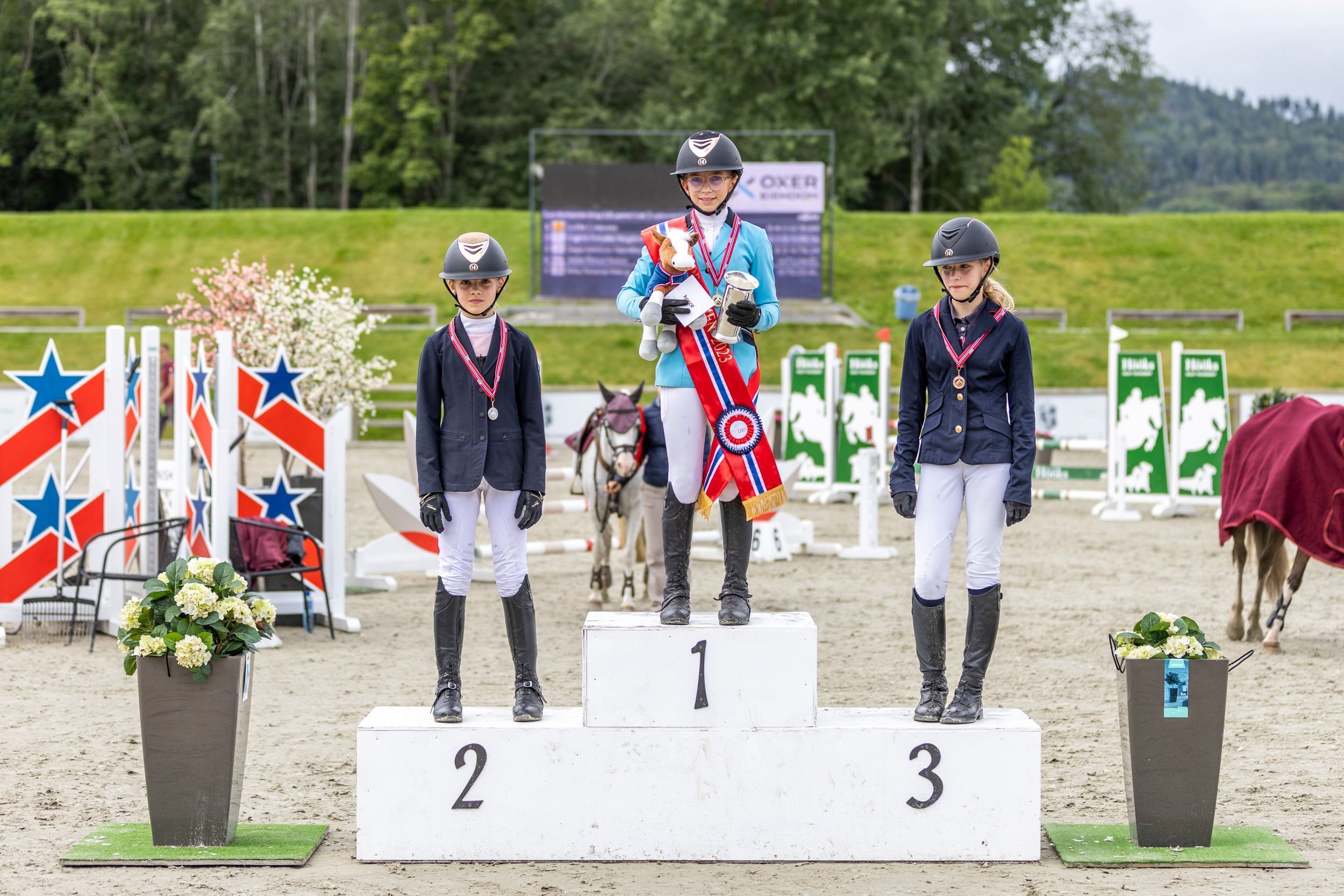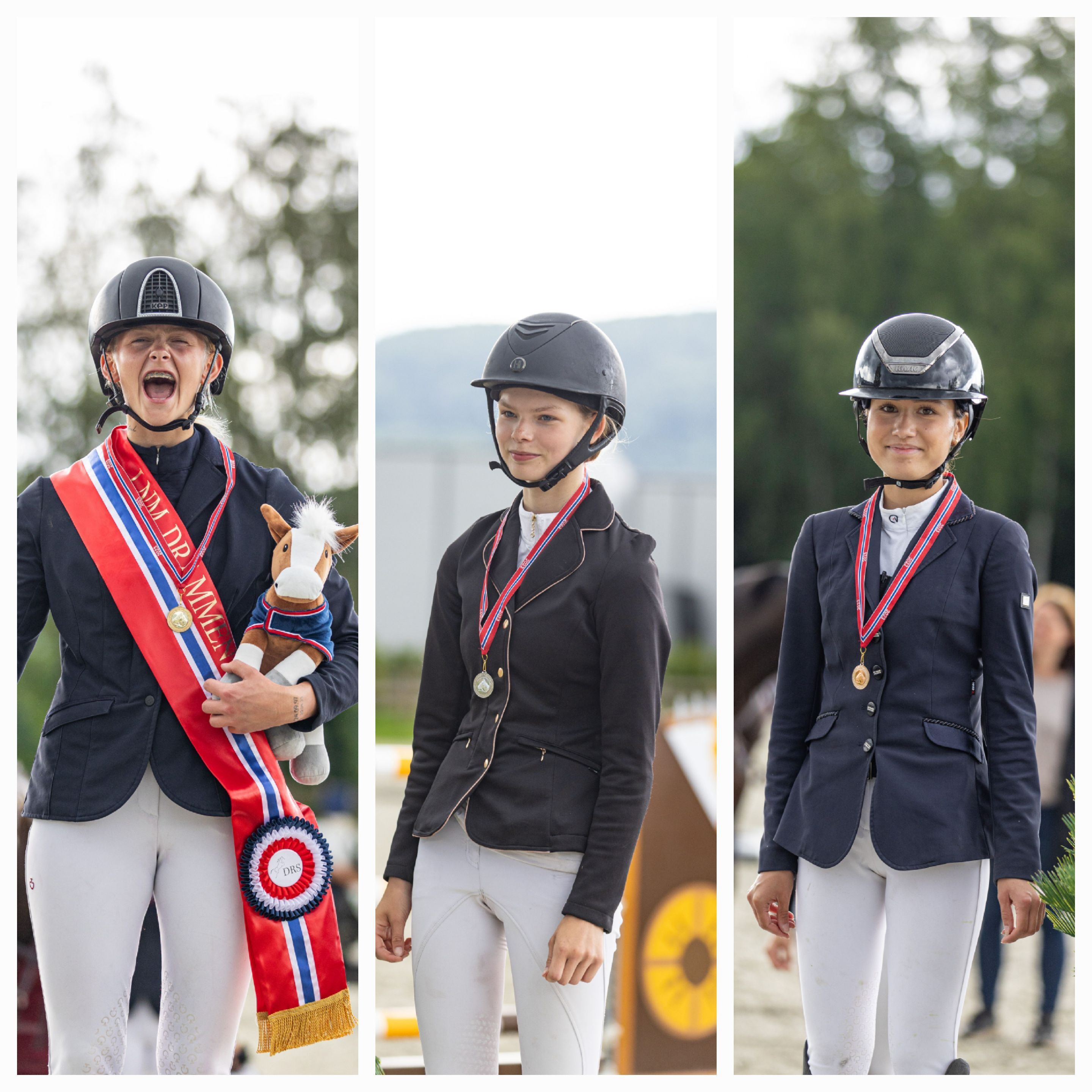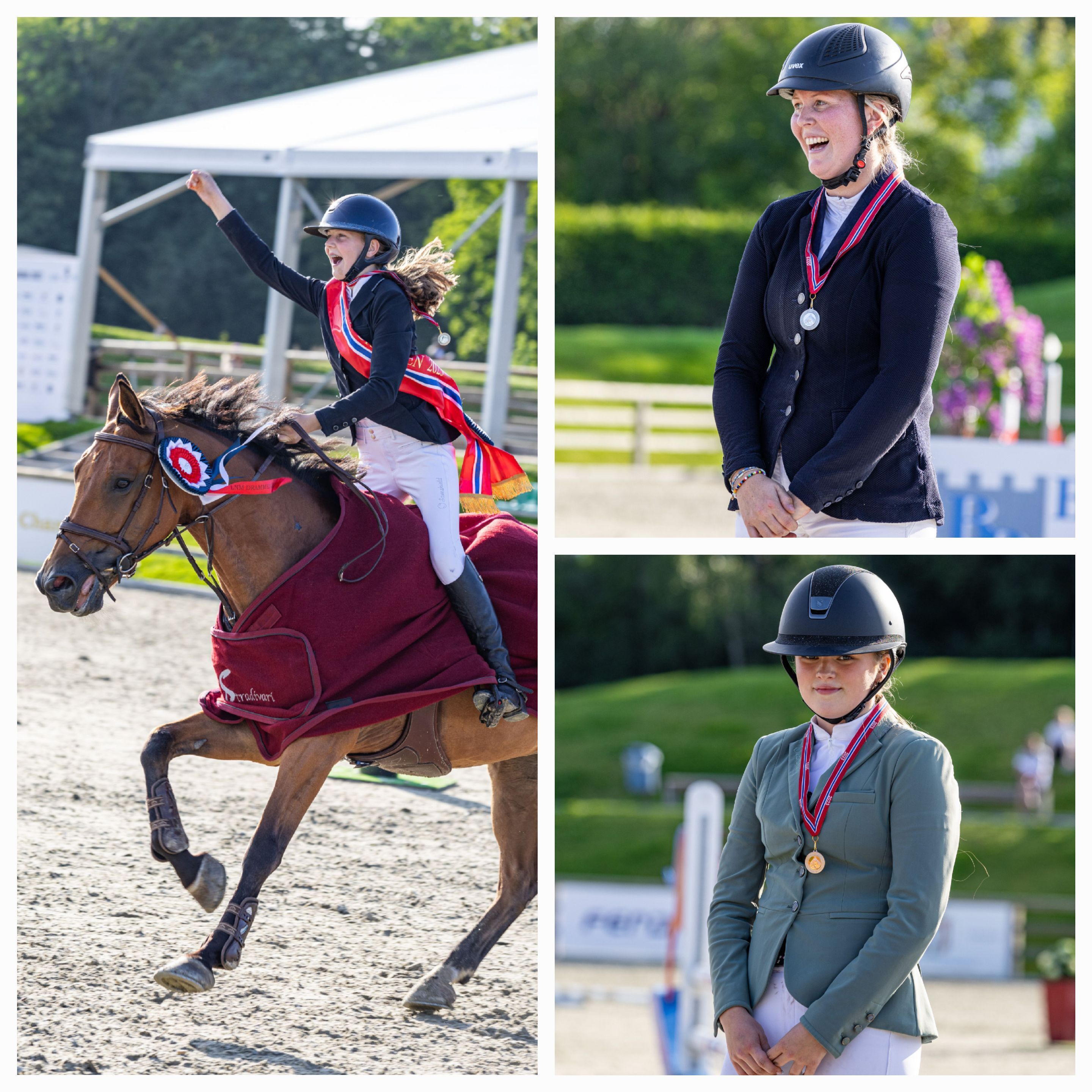 De unge rytterne i landsmesterskapet for LA ponni for kategori 3 og 2 presentert av Hööks måtte på sin side ut i omhopping mot klokken for å avgjøre medaljefordelingen. Gullet gikk til Hanna Elisabeth Jackhelln med Golden Spirit fra Skedsmo Rideklubb, mens de to lagvenninnene Bertine Hagen Berentsen og Linnèa Paulsen fra Drammen Rideklubb sikret sølv og bronse med Soxs Pocket Rocket og CC Sergeant.