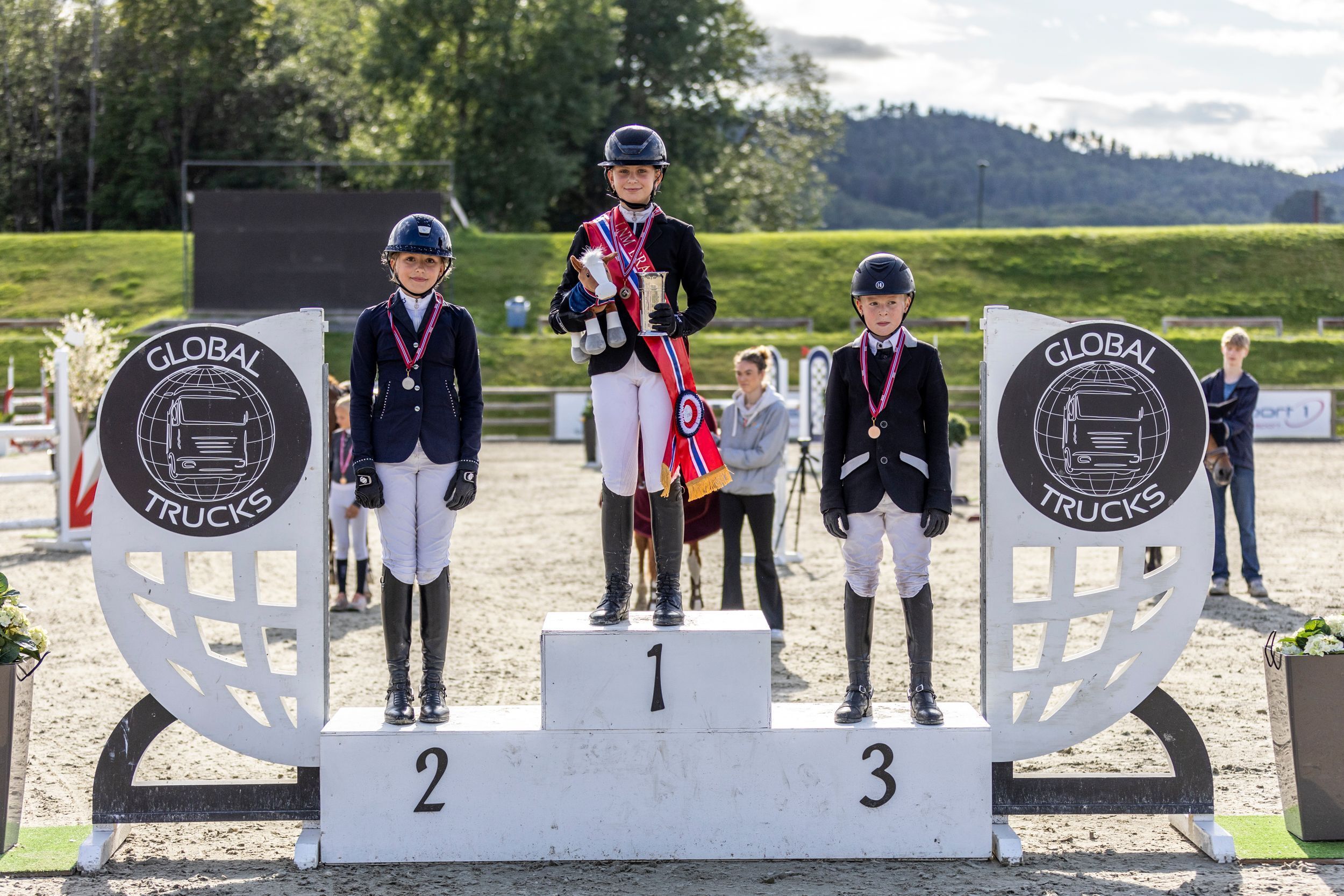 Landsmesterskapet for ponni MB kategori 1 presentert av Global Trucks avsluttet ikke bare stevnedagen på ring 2, men også hele mesterskapshelgen på Drammen Ridesenter. Arendal og Grimstad Rideklubbs Else Victoria Syversen Verstegen kapret gullet med SL Safo IV. Sølvet gikk til Kaja Foss Kjølner fra Jarlsberg og Melsom Rideklubb med Done 'N Dusted Dusted, mens klubbvenninnen Una Sønju Le Bruyn kapret bronsen med Belem Du Verdon.
