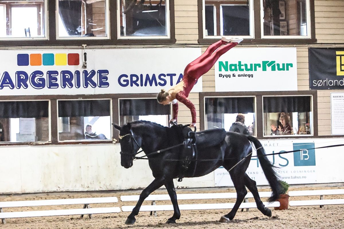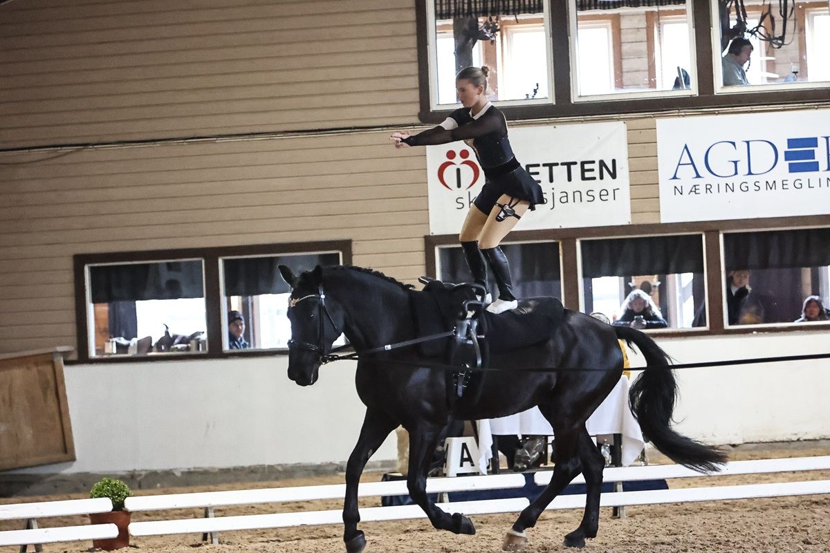Svenske Maja Petterson med hesten Freilene Fifija og Thea Lindgren som longør var tidenes første utenlandske utøver ved det første internasjonale voltigestevnet i Norge som ble arrangert hos Arendal og Grimstad Rideklubb knappe to uker siden. - En opplevelse, lyder det fra Team Fifija.